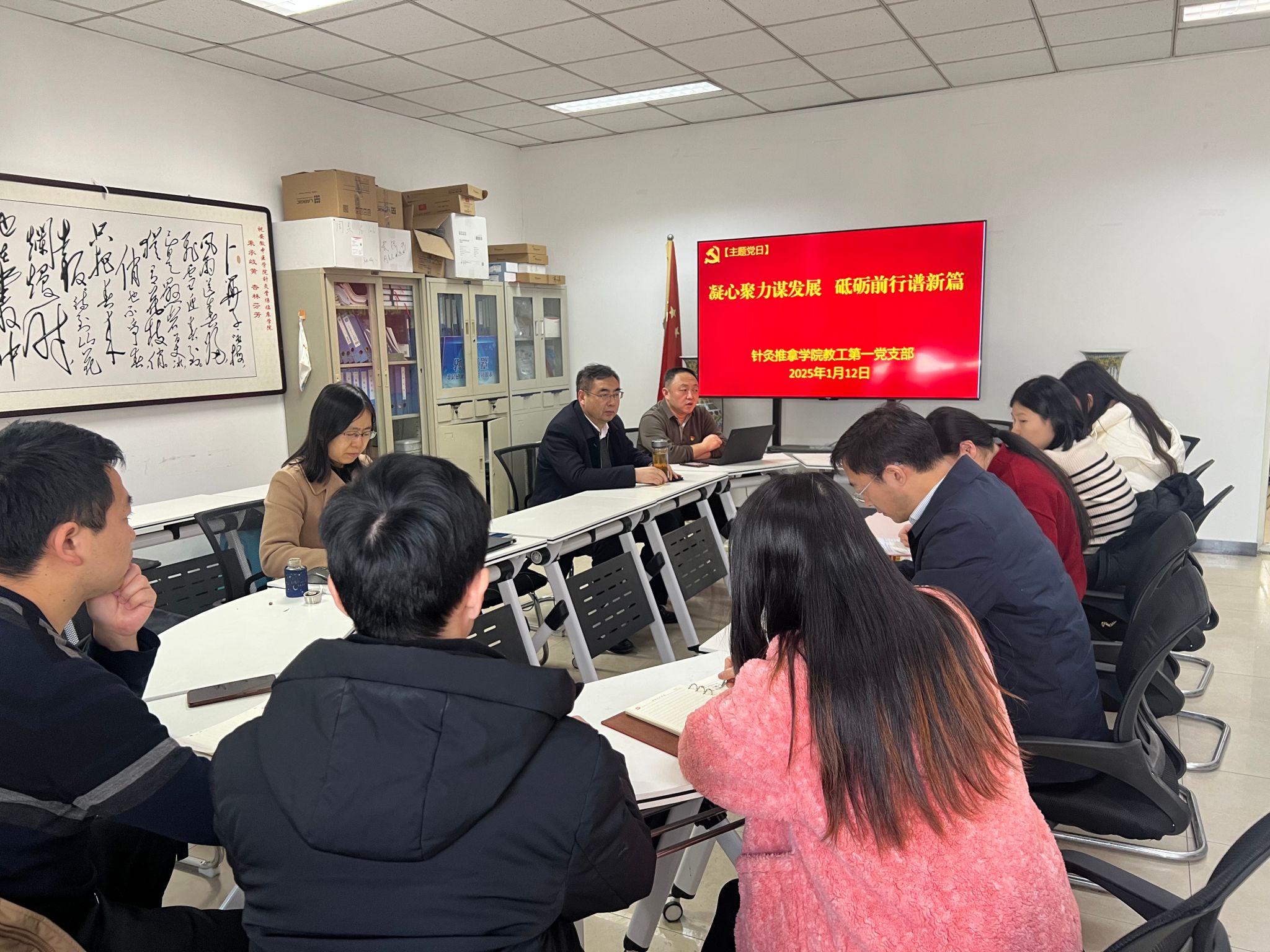 1月12日下午,英国365集团官网教工第一党支部在梅山路校区举办2025年第一次主题党日活动,教工第一党支部党员教师、针灸推拿系、针灸经络研究所教师代表参加本次活动。活动由教工第一党支部书记吴子建主持。