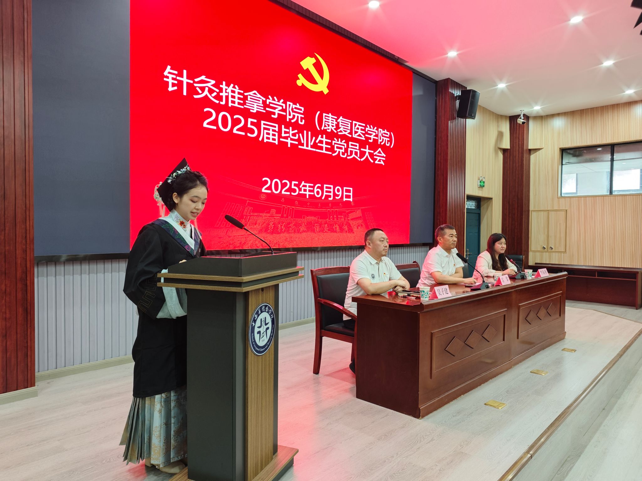 作为全国样板党支部的书记吴子建向即将踏上人生新征程的毕业生党员送上殷切寄语。他勉励全体毕业生党员,要时刻牢记党员身份,坚定理想信念,将个人发展融入时代洪流和国家需要之中,在未来的学习或工作岗位上,持续发挥先锋模范作用,以扎实的专业能力和高尚的医德医风服务社会、报效祖国,展现针推学子的卓越风采。