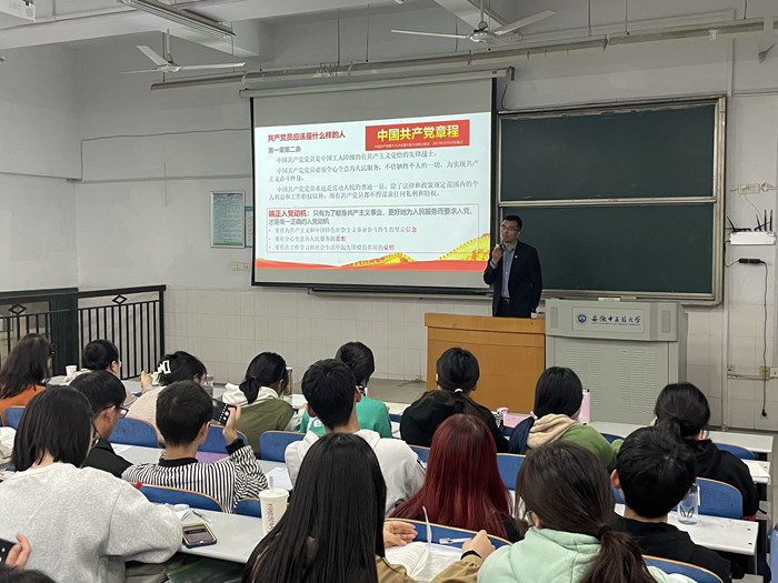 仪式结束后,蒋宏杰为本期学员讲授培训班的第一课——《学习习近平总书记在庆祝中国共产党成立100周年大会上重要讲话精神 端正入党动机》。本次培训计划为期一周,将为共253名入党积极分子培训班学员针对性地开设多个专题讲座,同时还安排观看影像、小组讨论、撰写心得体会等多项内容。(何莹/图文 蒋宏杰/审核)