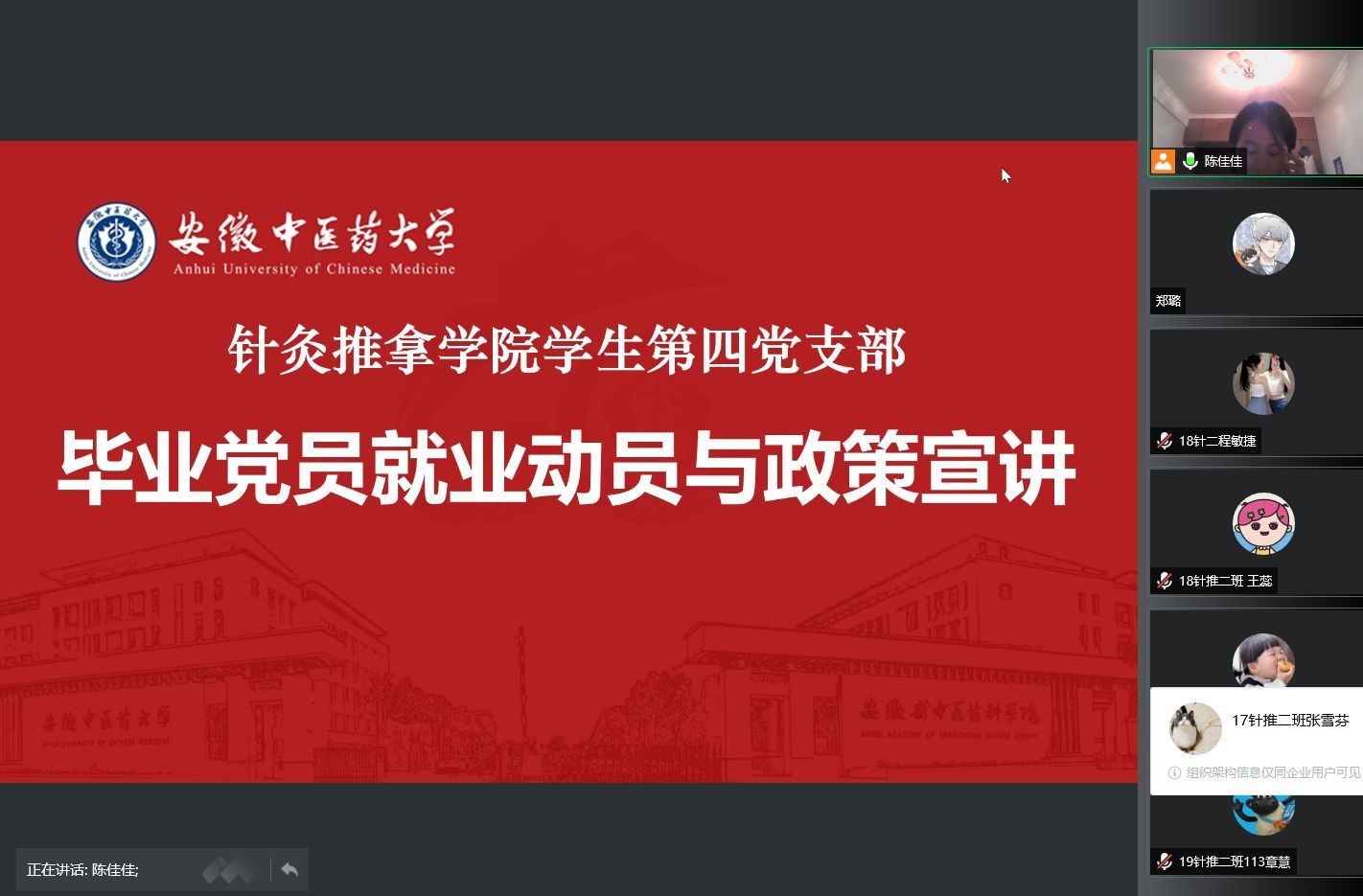 4月26日晚,英国365集团官网员工第四党支部召开2021年度组织生活会暨民主评议党员专题支部大会,会议在腾讯会议平台开展,会议由员工第四党支部书记陈佳佳主持,支部全体党员参会。