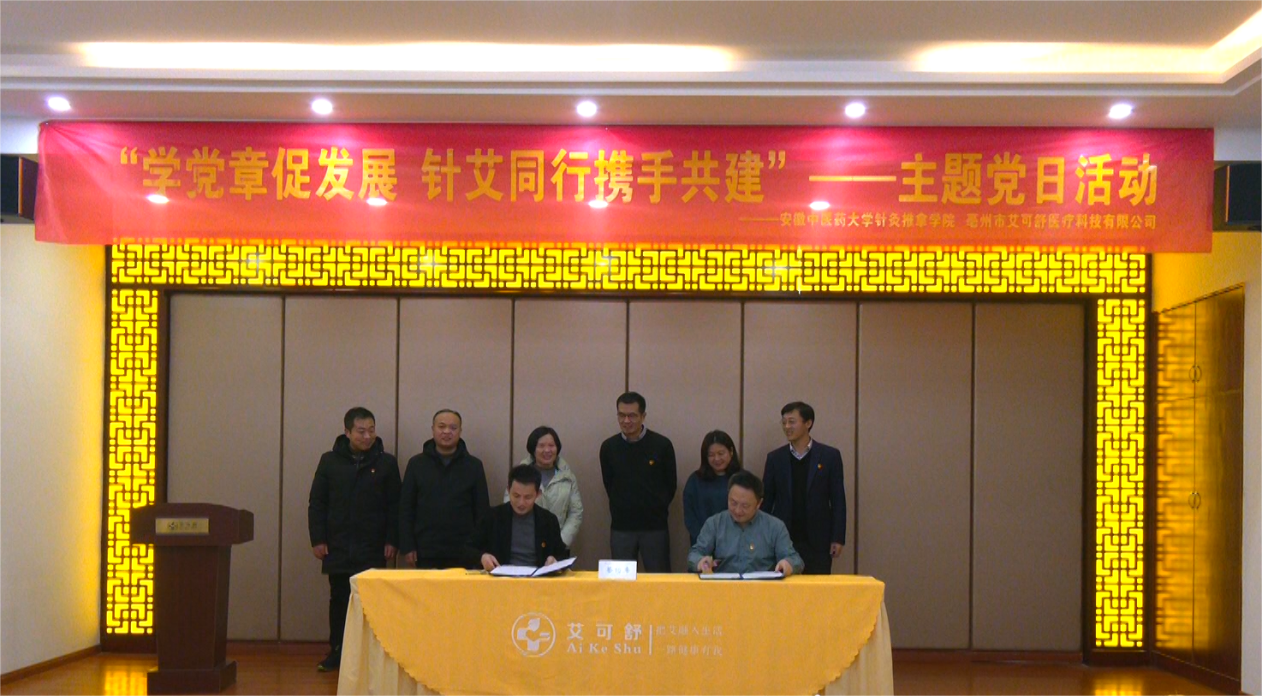 1月12日,英国365集团官网教工第一党支部与中共亳州市艾可舒医疗科技有限公司党支部联合开展“学党章促发展,针艾同行携手共建”主题党日活动,公司党委书记蒋宏杰、利辛县委组织部副部长申刘云参加活动。