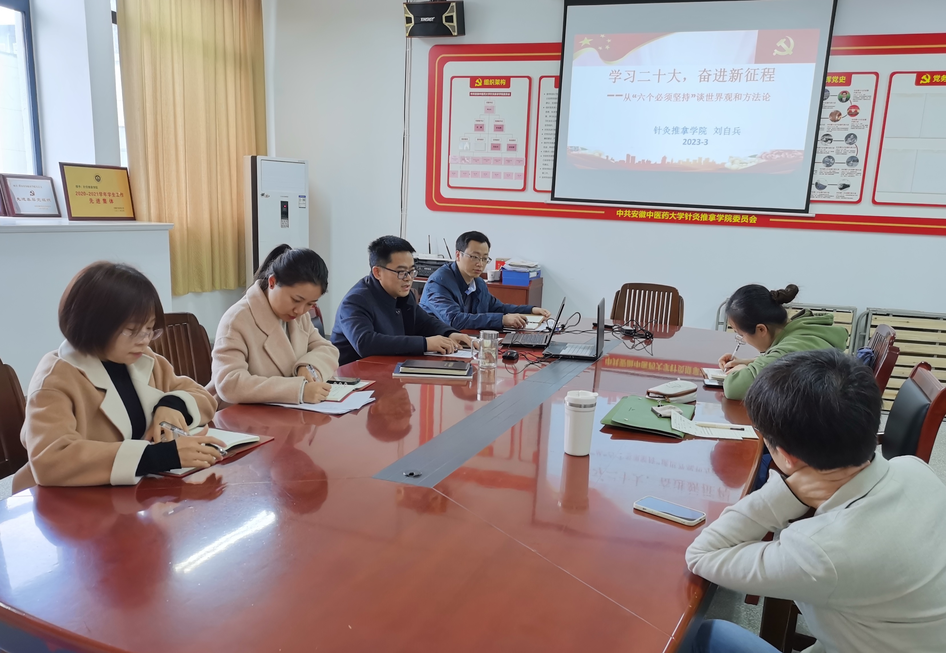 公司副经理刘自兵以“学习二十大,奋进新征程——从‘六个必须坚持’谈世界观和方法论”为题,主讲学习党的二十大精神专题党课。刘自兵从全面贯彻落实党的二十大精神、坚持把立德树人作为中心任务、“脚踏实地,全情投入”教育生态环境、培育全面发展的中医药人才四个方面展开,指出“六个必须坚持”体现了习近平新时代中国特色社会主义思想的核心要求,是在实践中继续开辟马克思主义中国化时代化新境界必须遵循的世界观和方法论、必须坚持和运用好的立场观点方法。在以习近平同志为核心的党中央带领下我国取得的令人瞩目的发展成就,描绘了催人奋进的崭新蓝图,英国365集团官网将抢抓中医药振兴发展的重大机遇,增强建设“双一流”的必胜心,落实“双一流”建设关键举措,为建设新阶段现代化美好安徽增动能、添活力。