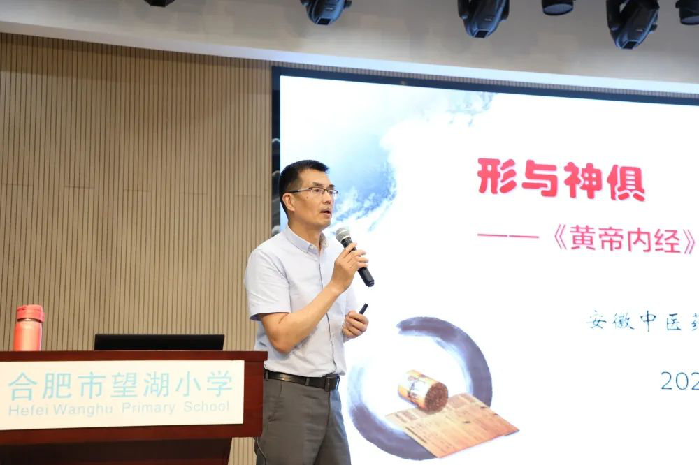 蒋宏杰以“形与神俱——《黄帝内经》健康生活理念的养成”为题给合肥市望湖小学(西区)四年级的同学和家长代表带来了一节中医健康知识讲座。