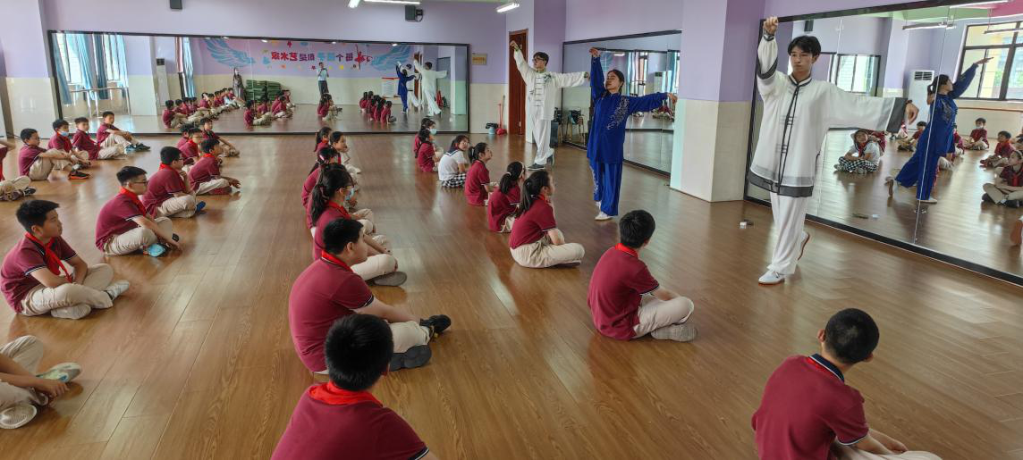 跟着李斯亮老师和老员工志愿者徐一鸣、许润洋的演示,孩子们一招一式认真地学习,孩子们的学习模仿能力非常强,渐渐的孩子们都动作已经有模有样了。