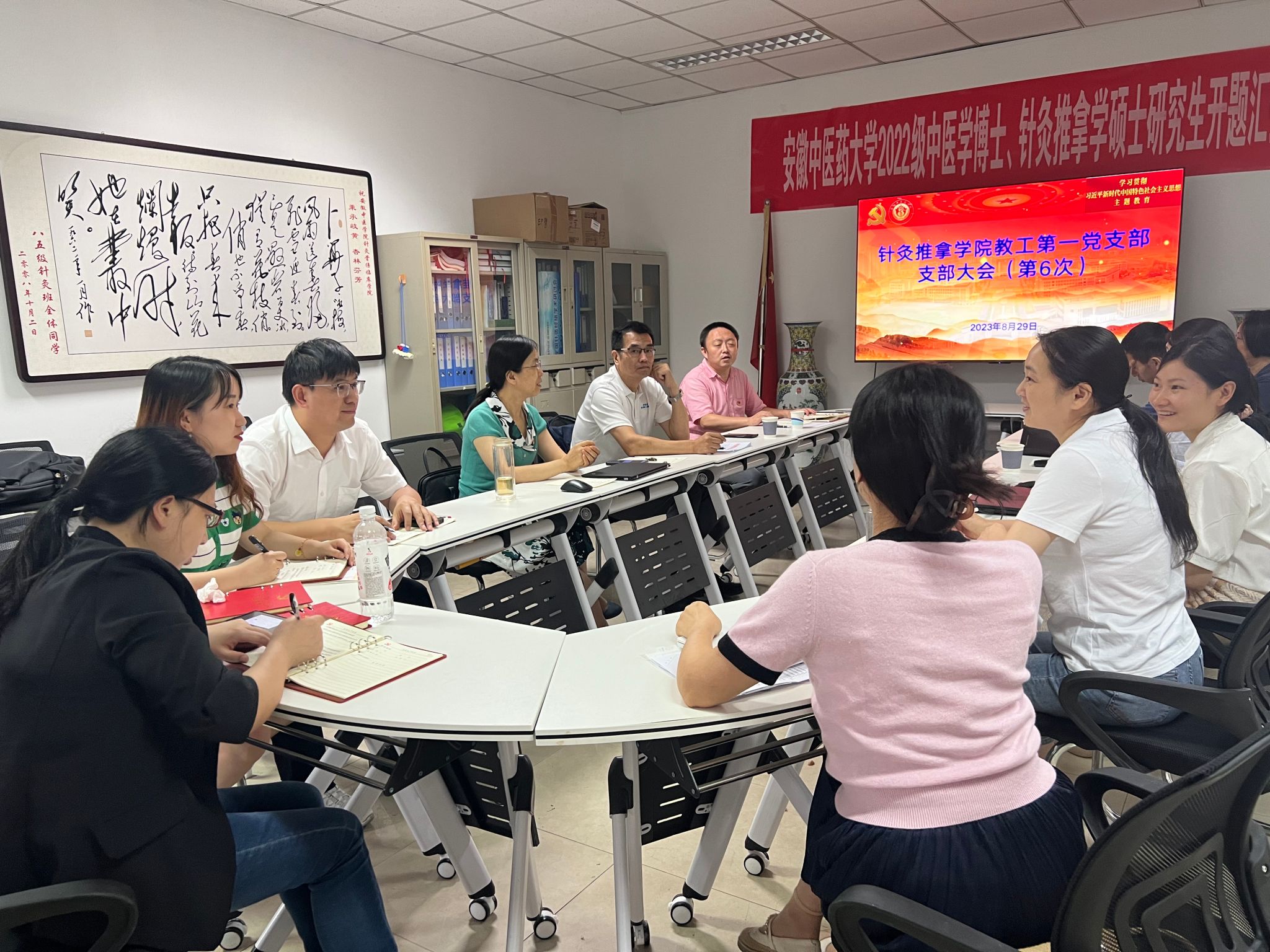 参会人员进行了浙江“千万工程”经验案例学习研讨,以及“三问”研讨,并集体观看了中国针灸学会“百名科学家讲党课”系列讲座第四十讲《学深悟透“六个必须坚持”---以国医大师贺普仁为榜样》。