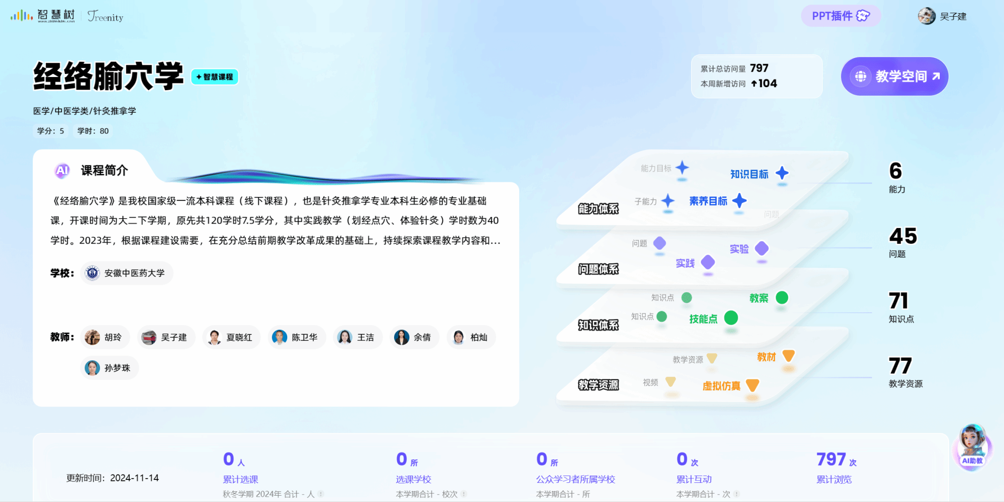 11月14日下午,《经络腧穴学》课程组部分教师与智慧树平台代表,就《经络腧穴学》课程知识图谱与智慧课程建设进展,进行了交流研讨。此次会议旨在总结前期工作成果,探讨下一步的发展方向,以确保课程建设的顺利推进。