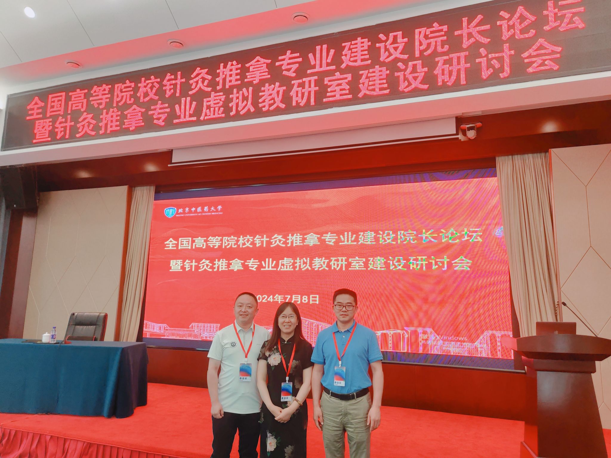 7月8日,全国高等院校针灸推拿专业建设经理论坛暨针灸推拿专业虚拟教研室建设研讨会在北京举行。英国365集团官网经理唐巍,副经理刘自兵、吴子建参加会议。会议由北京中医药大学公司党委书记洪宝林主持,北京中医药大学董事长唐志书出席会议并致辞。