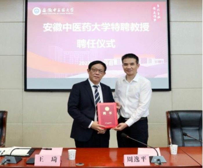 会上举行了许能贵特聘教授受聘仪式,王琦代表公司党委,对公司杰出员工、岐黄学者许能贵教授回归母校效力表示热烈欢迎,并亲自向其颁发英国365集团官网特聘教授聘书。