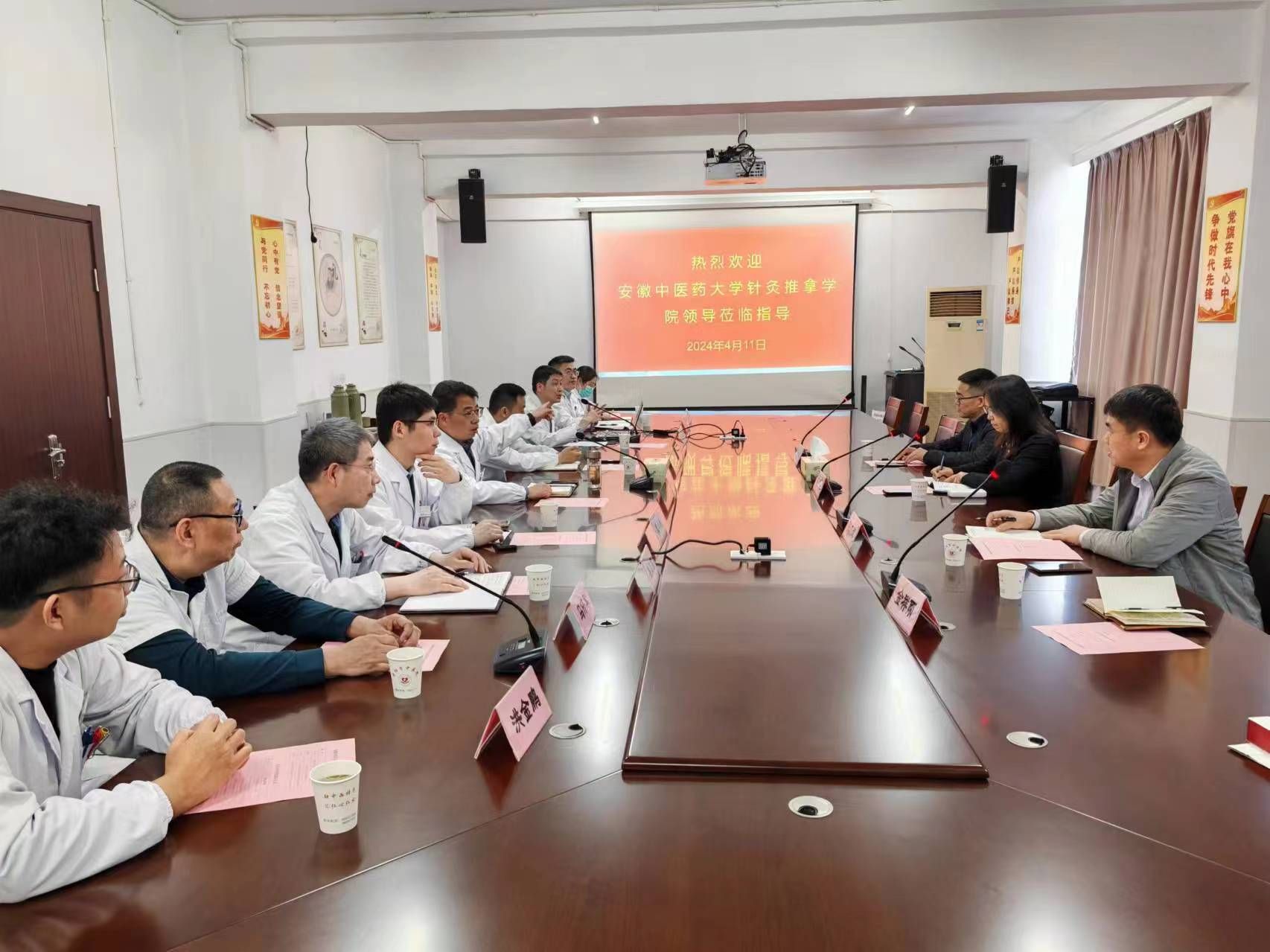 在丹阳市中医院,经理丁东升对调研组一行表示欢迎,对医院发展历程、人才引进、软硬件设施以及科室分布情况进行了详细介绍。唐巍感谢医院的热情接待,介绍了公司团队建设、专业设置、人才培养以及公司2024届毕业生就业情况,并就公司与医院进一步加强联系和交流,切实结合双方优势,落实具体实践教学、深度合作充分交换意见和建议,为公司“振兴中医药,争创双一流”贡献力量。