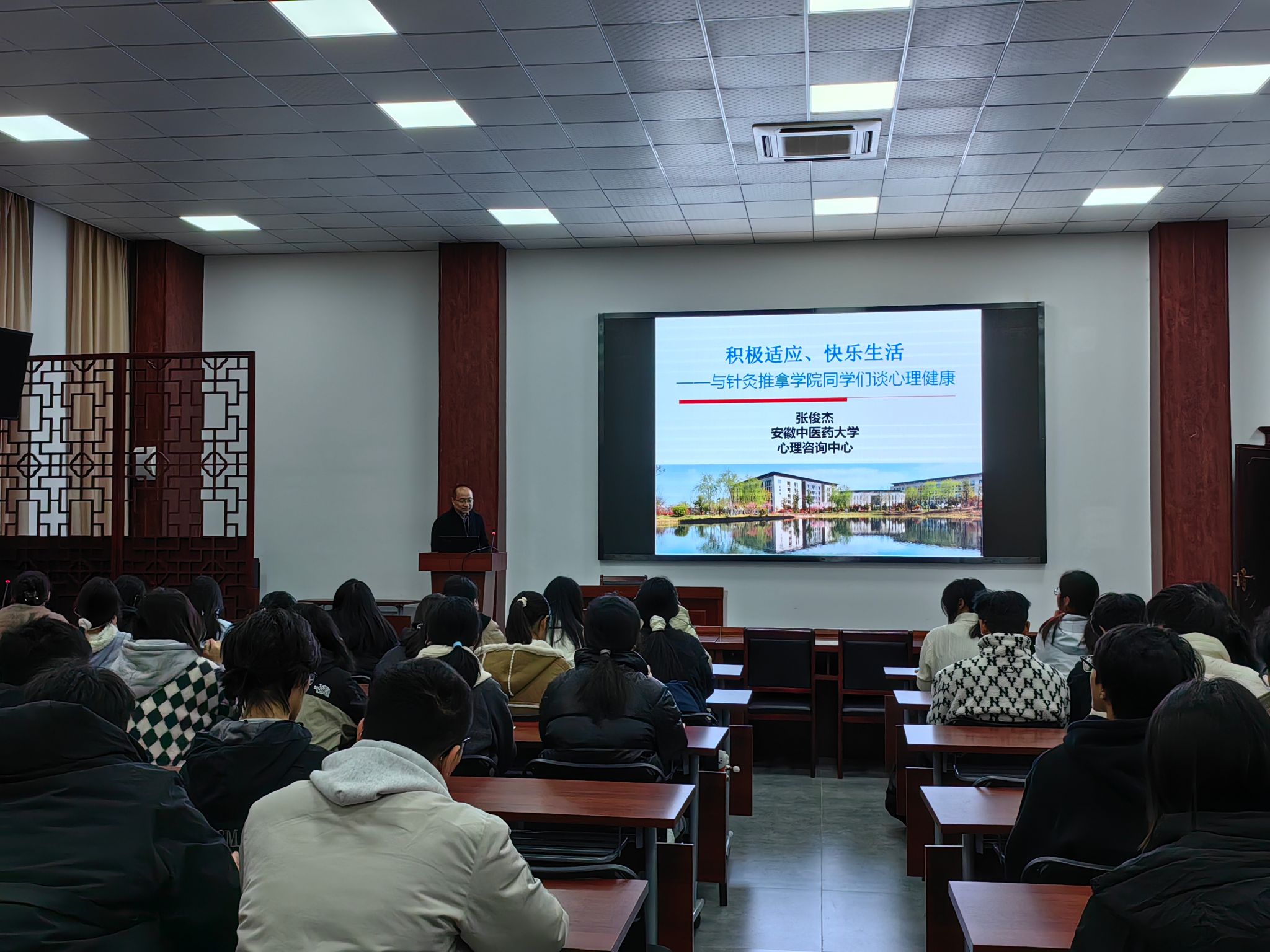 张俊杰以“积极适应,快乐生活”为主题,结合自身多年丰富的心理咨询经历,用轻松幽默的语言为同学们讲授心理健康知识,引导同学们树立阳光乐观的心态。
