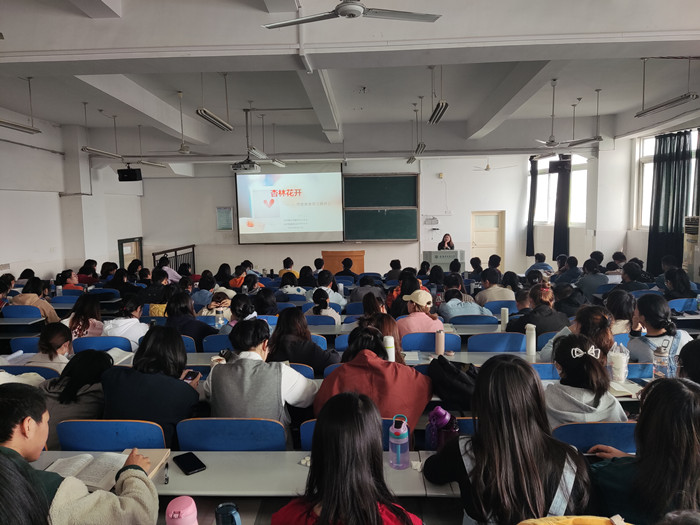 李海燕以“杏林花开”为主题,从心理健康标准、心理健康问题成因分析、老员工主要心理健康问题三个角度逐步进行讲解,充分分析并结合实际案例讲解了加强自我了解、增强自信、与人相处的语言艺术等的重要性。从个人、家庭、公司、社会环境等方面刨析了心理问题的成因与解决办法,并对可能存在的老员工心理问题一一列举和找到应对策略,使同学们进一步认识、了解、学习和掌握心理健康知识的重要性。