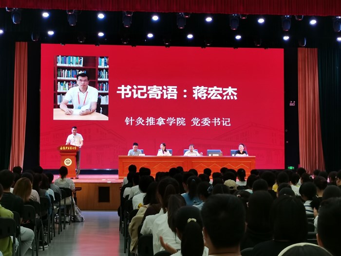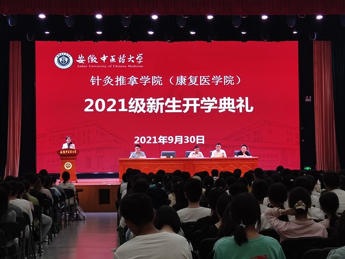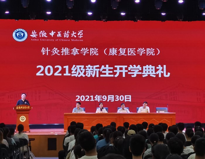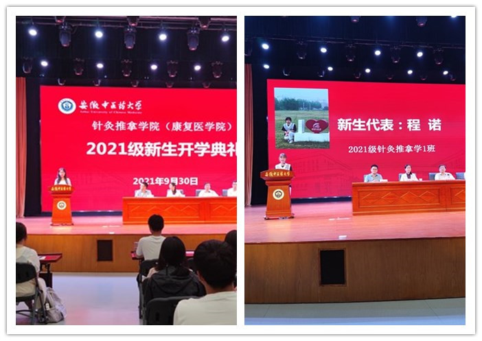 2021级针灸推拿学1班程诺和2017级康复治疗学2班毕珂瑶分别作为新生和老生代表发言。