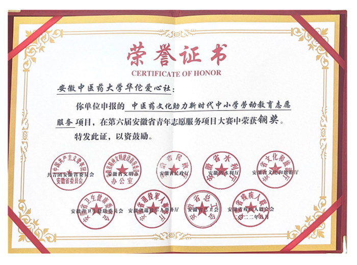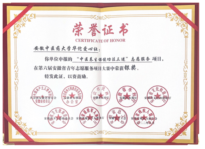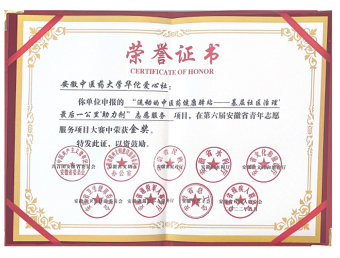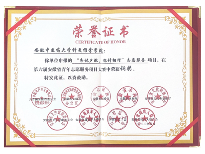 其中,公司4个参赛项目(《流动的中医药健康驿站》,《“中医药养生保健功法三进”志愿服务项目》,《中医药文化助力新时代中小学劳动教育志愿服务项目》,《“杏林夕撒,银针相惜”志愿服务项目》)不负众望,在校团委、公司党委的领导下,公司团委的指导下,弘扬主旋律,激发正能量,冲入项目大赛决赛,分别获得金奖,银奖,铜奖,铜奖。(张星/文图 蒋宏杰/审核)