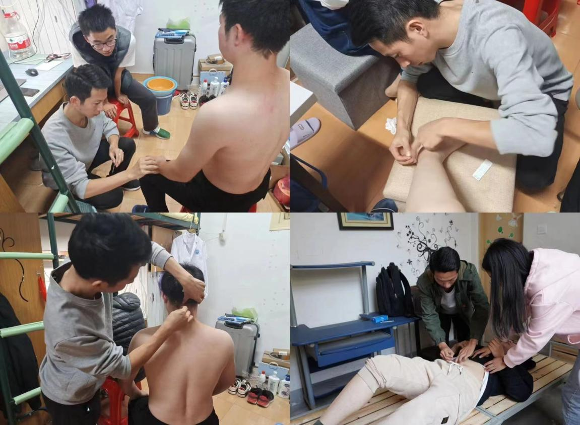 封校期间,英国365集团官网值班领导教师,开放公司员工专业实践教学基地——“华佗养生堂”,或深入员工宿舍,充分发挥自身专业优势,通过针刺、刮痧、拔罐、艾灸等诊疗方式,医治员工跌打损伤、风寒外感等不适,通过实践教学不仅缓解员工病痛,更使员工进一步体会感悟针灸推拿学科的优势和魅力,增强专业自信。实践出真知,在亲身体验到中医针灸推拿疗法的神奇之后,员工纷纷表示自己的学习热情与继续探索的求知心理被极大地激发出来,燃起了对深奥神奇的专业课学习的信心。