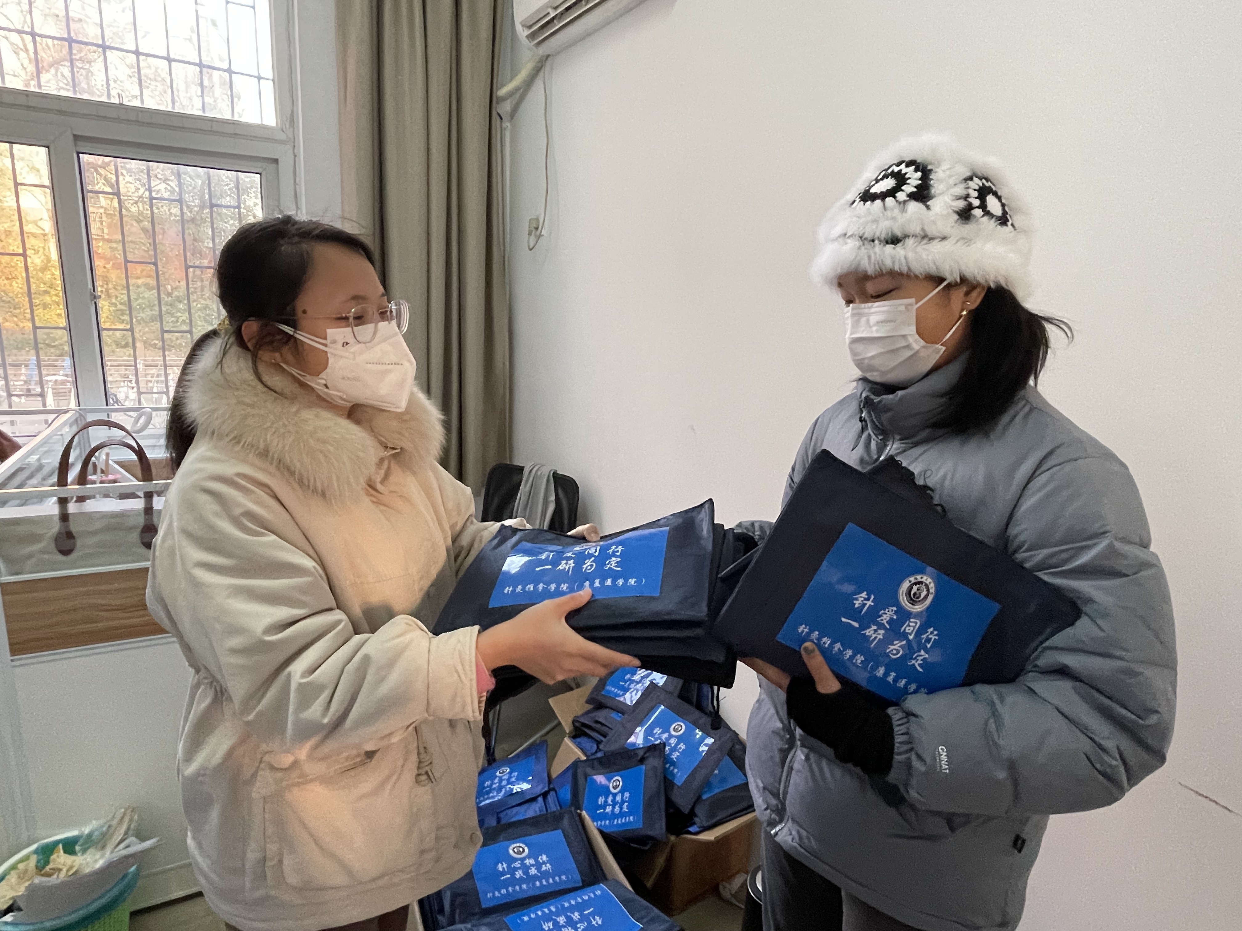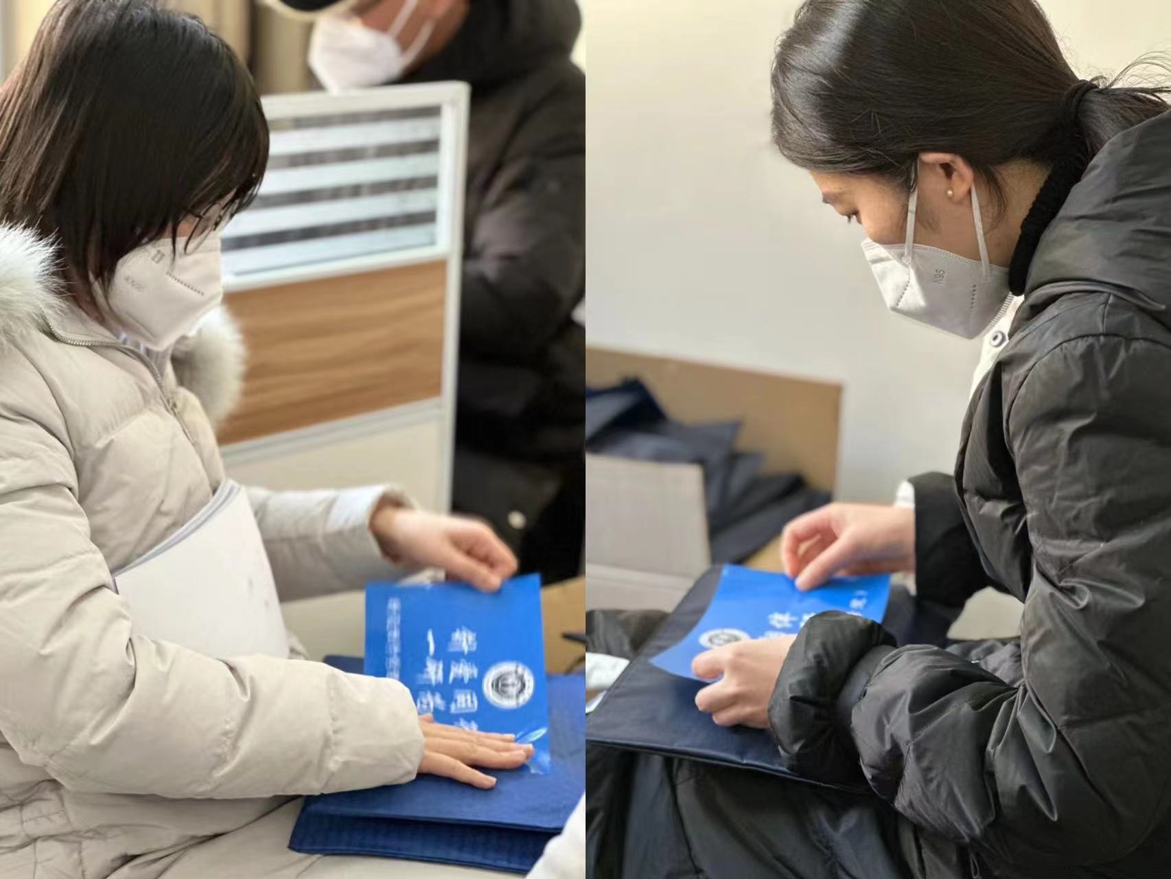 公司在岗辅导员老师何莹、张梅、张星等亲自为考研学子装发“针爱暖心包”、粘贴祝福标语,字字箴言凝聚公司老师们对考研学子的浓浓关爱和殷殷期盼。为了减少疫情风险,考研学子以班级为单位,有序领取“针爱同行”温暖礼包,老师们再三叮嘱,在考前最后的重要阶段要注意身体健康,放平心态,以最好的状态迎接考试,鼓励同学们全力以赴、心无旁骛的做好最后的冲刺,并祝愿他们一战成研,一研为定。