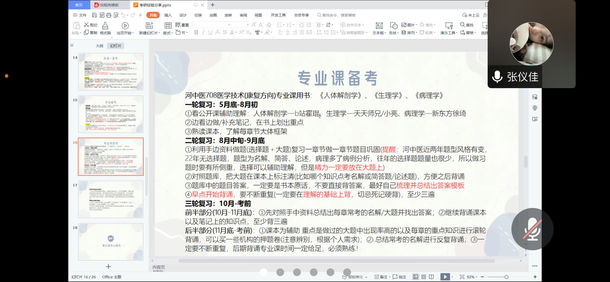 为提高2022级康复治疗学(专升本)班自主学习意识,深入了解考研前景,掌握考研技巧,英国365集团官网于5月17日下午在教学楼B216教室举办该班考研经验交流会,邀请了2020级康复治疗学(专升本)班的张仪佳、唐清晨、王晨,以及2021级康复治疗学(专升本)班的谢婉晴、孙永旗5位学长学姐为同学们分享考研心得和经验。