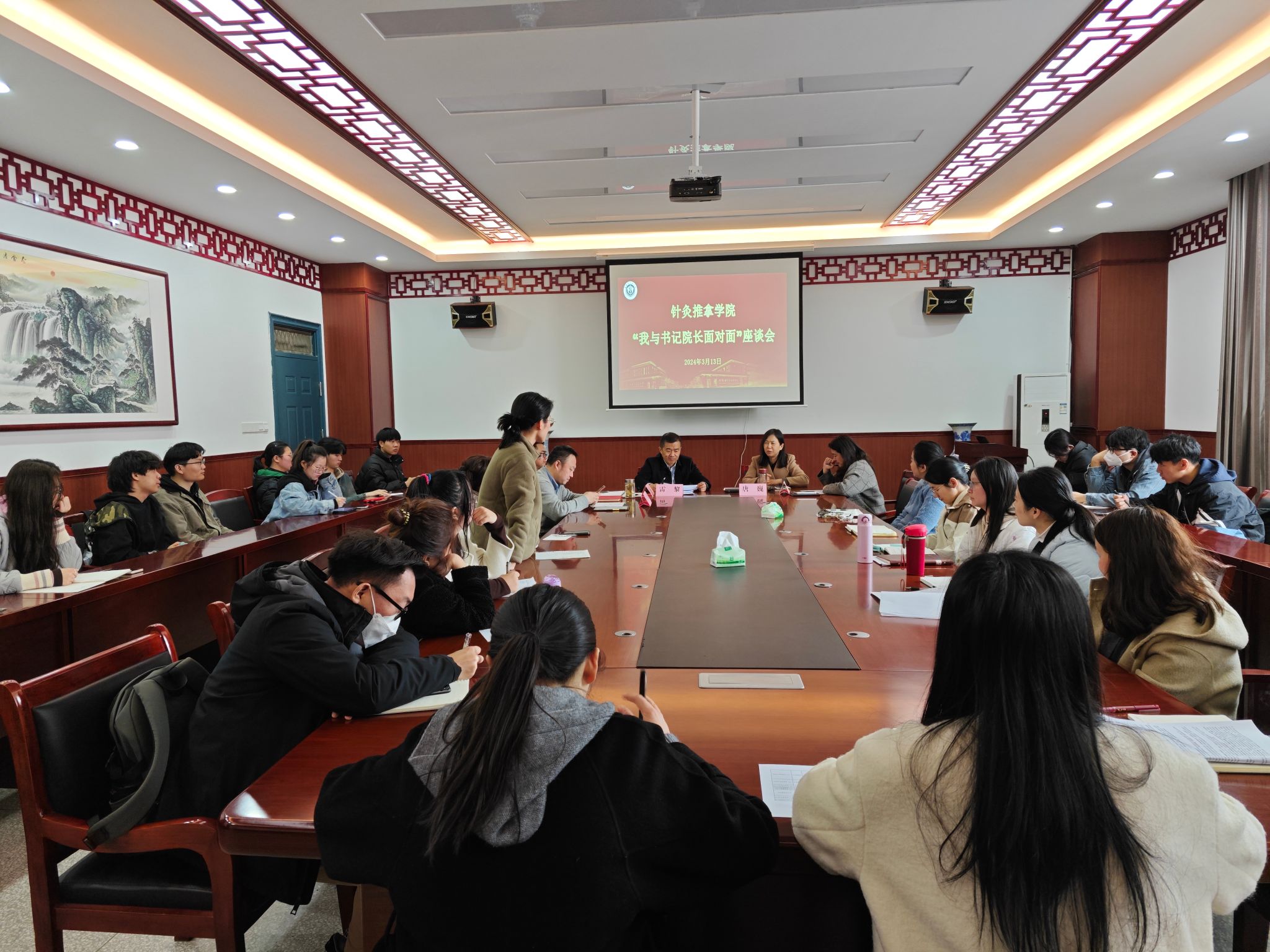 座谈会上,员工代表们分别从上课时间安排、公司基础设施建设、实习安排以及社会实践等方面踊跃发言。参会领导老师们认真听取员工代表的发言,同时对员工代表提出的问题和意见做出针对性回答和建设性意见,解答了同学们心中的困惑。