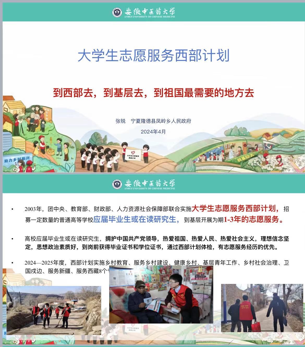 雷黎强调毕业生要树立正确的就业观,认真了解国家政策,客观研判就业形势,结合自身情况和国家需要做出就业选择,将个人的“小我”融入国家发展、人民幸福的“大我”之中,到祖国和人民需要的地方发光发热,用青春书写自己的人生华章。李海燕详解了今年征兵政策和流程,从老员工入伍、个人发展、退伍复学、考研专项计划、入伍经济补贴等国家出台的新政策入手,进行了具体解读,号召同学们积极响应国家号召,献身国防事业,携笔从戎,让青春与军营碰撞出最耀眼的火花。公司分团委副书记洪丹围绕西部计划的重大意义、实施情况、工作内容、政策保障等方面进行介绍,并重点介绍了2024-2025年度西部计划安徽省地方项目-安徽省老员工志愿服务乡村振兴计划。公司2023届毕业生、西部计划志愿者张锐向学弟学妹们分享了自己在宁夏隆德县凤岭乡参加志愿服务的经历和感悟,线上解答同学们的疑惑,号召同学们奔赴西部,奔赴基层,以行动实现自我价值,让青春在强国建设、民族复兴的火热实践中绽放绚丽之花。