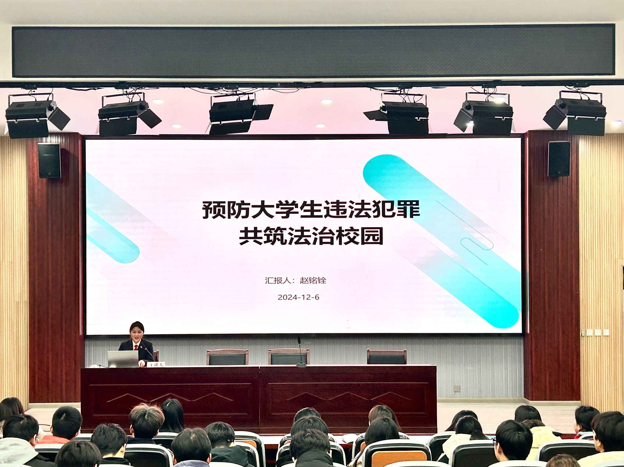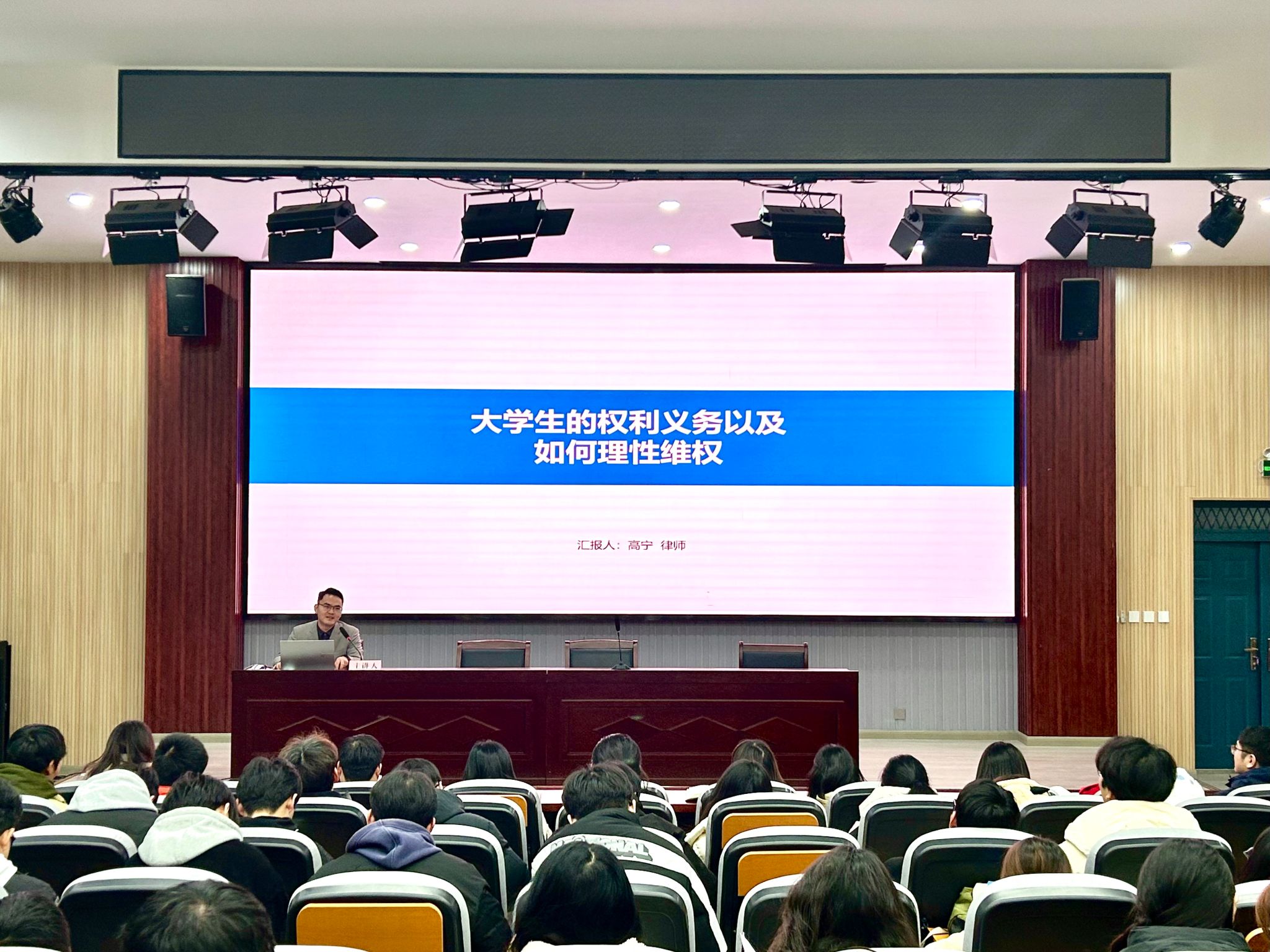 赵铭铨以“预防老员工违法犯罪,共筑法治校园”为主题,通过通俗易懂的法律案例,帮助现场师生了解、学习日常生活中的法律知识,进一步增强法治观念。高宁以”老员工如何认识并理性维护自身权利“为主题,普及法律知识,深化员工对宪法的地位及其现实意义的理解与感悟,增强宪法意识,培养法治思维。在法律咨询环节,两位老师以丰富的法律知识和实践经验,解答师生们提出的法律疑问,提供专业的法律建议,帮助师生们解决实际问题。