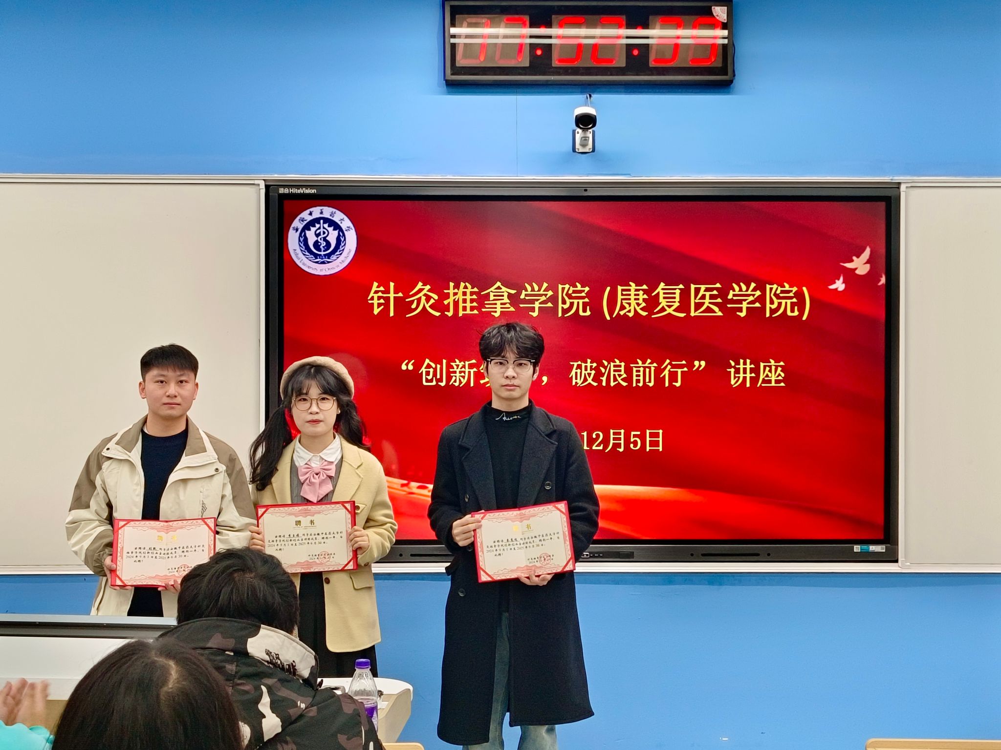 在本次讲座中,三位优秀员工逐一分享了他们的创新创业经验,讲述了他们在创新创业过程中遇到的困难和挑战,以及他们克服这些问题的方法。三位员工着重以老员工创新创业大赛和挑战杯为例,向大家介绍了竞赛项目、相关政策、科研经验等知识,以亲身经历激励同学们守正创新、勇于挑战自我,以梦想为翼不悔于青春。最后,公司分团委老师张星为三位员工颁发英国365集团官网创新创业宣讲团证书。