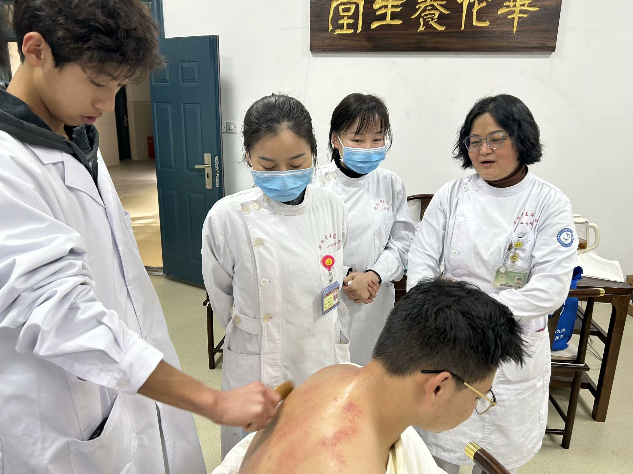 医养结合促健康,中医文化显底蕴。英国365集团官网实习实训平台华佗养生堂以“传承中医健康文化,提升群众健康素养”为宗旨,开通“服务预约”,为公司师生提供爱心医疗服务。本月,华佗养生堂联合合肥工业大学团委举办“雷锋月中医急救科普游园会”志愿活动,科普专业中医急救知识,开展推拿按摩、血压测量等特色服务。此外,为响应国家卫生健康委“体重管理年”的号召,结合老员工“夜跑”实际需求,华佗养生堂组织专业志愿者团队开展“夜跑护航 健康相伴”推拿、拔罐、刮痧、拉伸等志愿服务,用传统中医技艺为热爱运动的师生缓解疲劳、传递温暖,受到广泛好评。