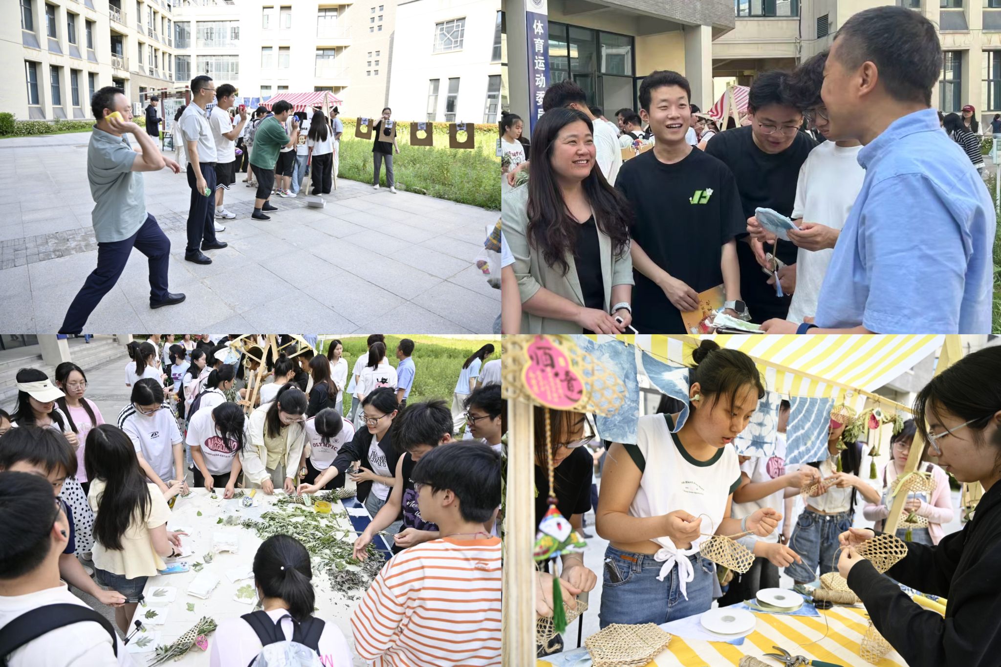 本次活动设置了丰富多彩的体验项目,参与者可通过传统植物染以及拓染技法制作独一无二的方巾或香囊,“艾草花束”制作则让大家在端午时节体验了传统民俗的雅致与温馨。此外,“投五毒”等趣味小游戏寓教于乐,既传递了驱邪避疫的节日内涵,也为现场增添了欢声笑语。活动也吸引了校内职工的积极参与,职工纷纷表示通过实践深刻感受到中医药文化与端午习俗的独特魅力,竖起拇指称赞活动“既有意义又有趣”。