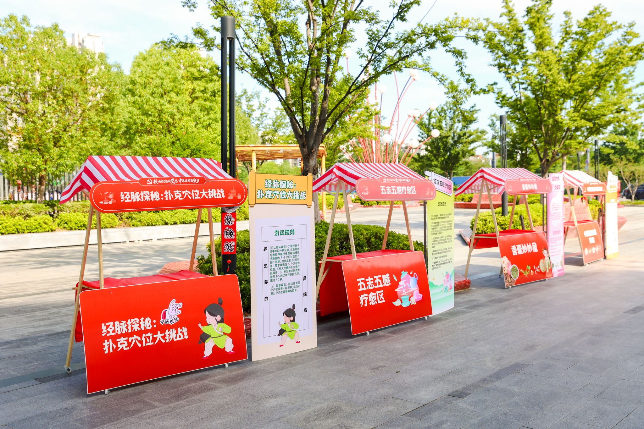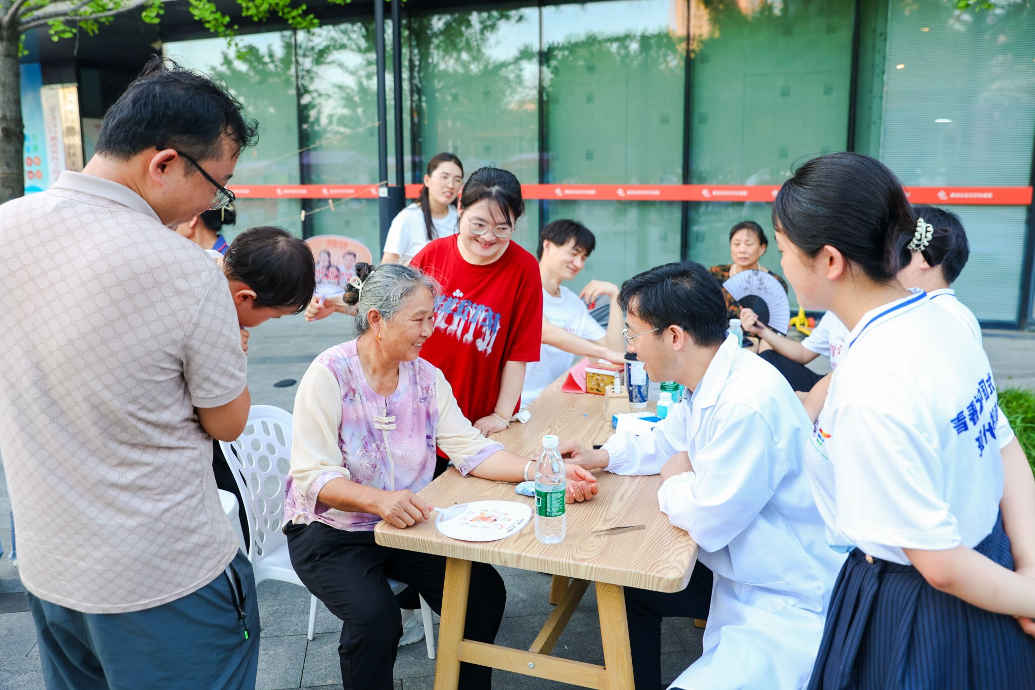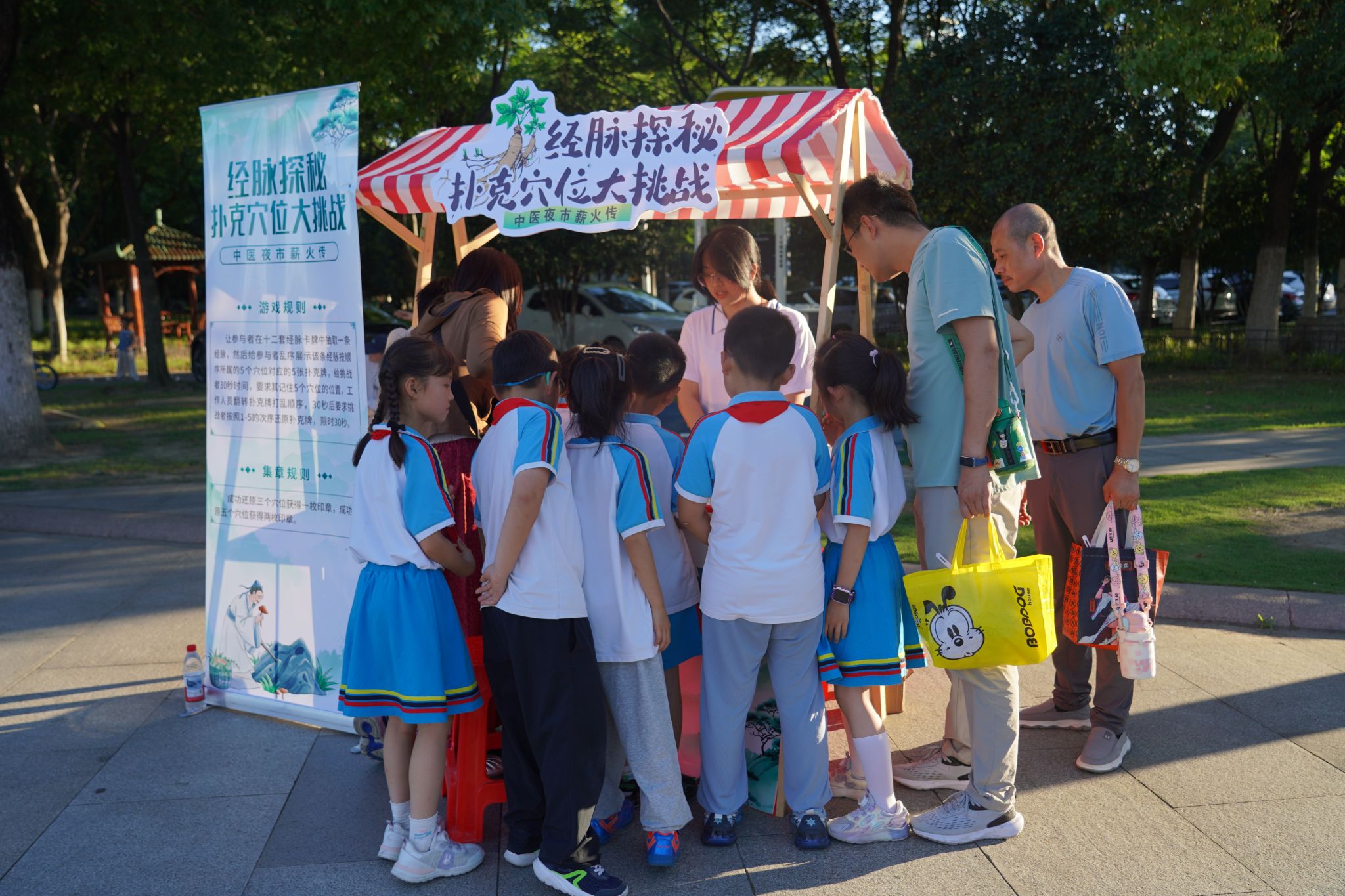 创意市集传薪火,党团联建谱新篇。公司党委指导公司分团委联合合肥印象滨湖旅游投资发展有限公司于7月1日在滨湖塘西河公园开展首届塘西河公园中医药文化户外创意市集活动。同时于7月2日联合磨店社区王圩社居党总支开展“校地联建颂党恩,中医夜市薪火传”中医药文化主题活动。接连两天的创意市集活动创新采用集章兑换机制激发参与热情居民完成指定任务即可累积印章并兑换体验券及奖品。现场精心设置了八段锦AI跟学““中医药emoji猜猜乐”“中药知识问答”“中医药飞行棋”等六大特色市集项目,通过趣味化形式向市民普及中医药专业知识同步开设染韵本草坊”“艾香锤韵阁”“香囊妙妙屋”体验区及特色文创“针艾喵”作为奖品。阶梯式奖励设计显著提升居民参与度,让参与者在动手实践中沉浸式体验中医药文化与非遗技艺的融合魅力。