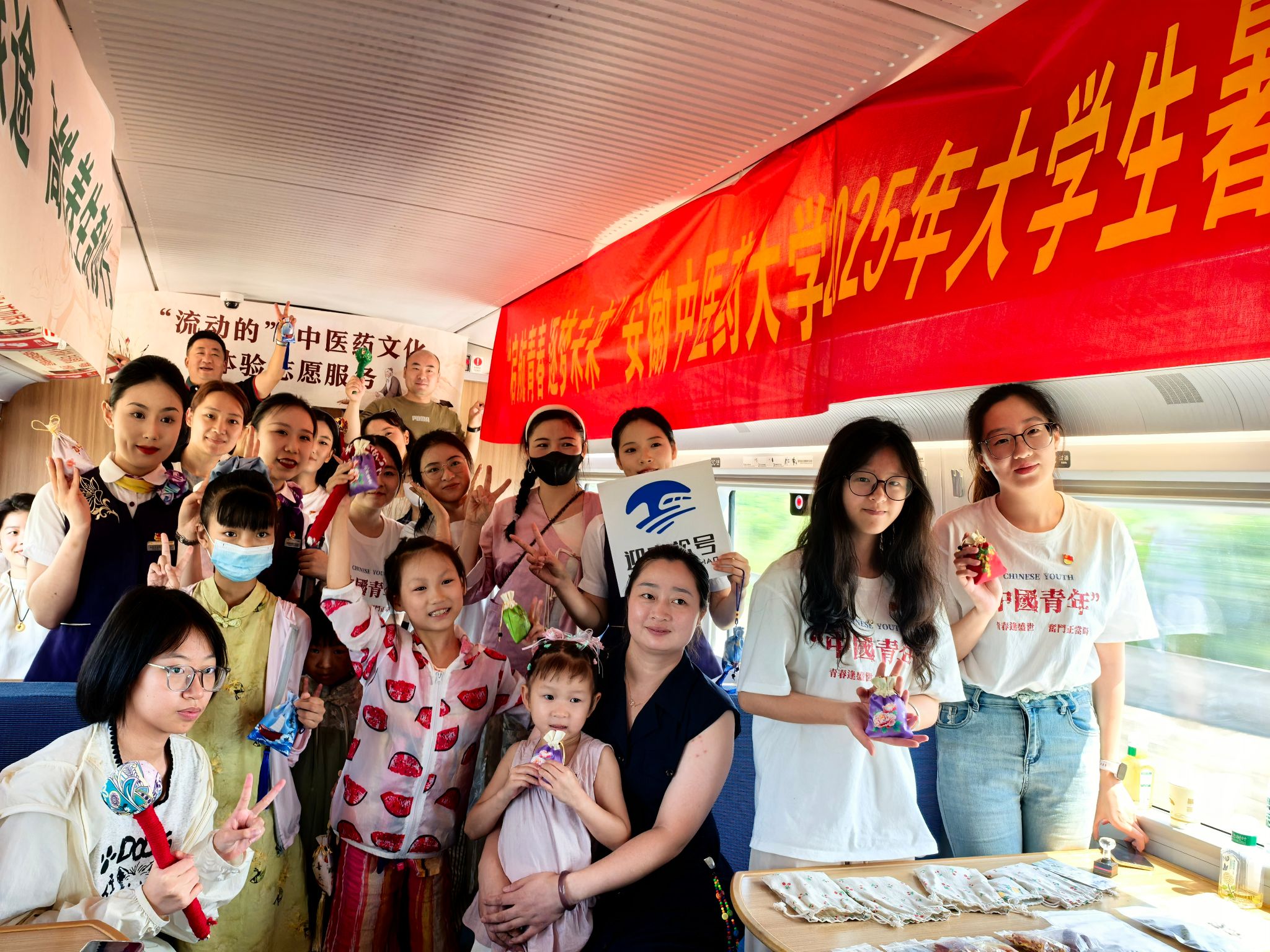 清凉药香伴旅途,高铁养生奇妙行。7月3日,英国365集团官网社会实践团队联合合肥客运段,在G7762次列车上展开了一“流动的”中医药文化体验活动,在炎炎夏日带给旅客们一场别开生面的高铁养生之旅。活动现场,旅客了解学习中药文化和中医学知识并参与手工制作艾草锤和香囊、体验耳穴贴压,在养生体验中感受中医药文化的科学智慧和无穷魅力。