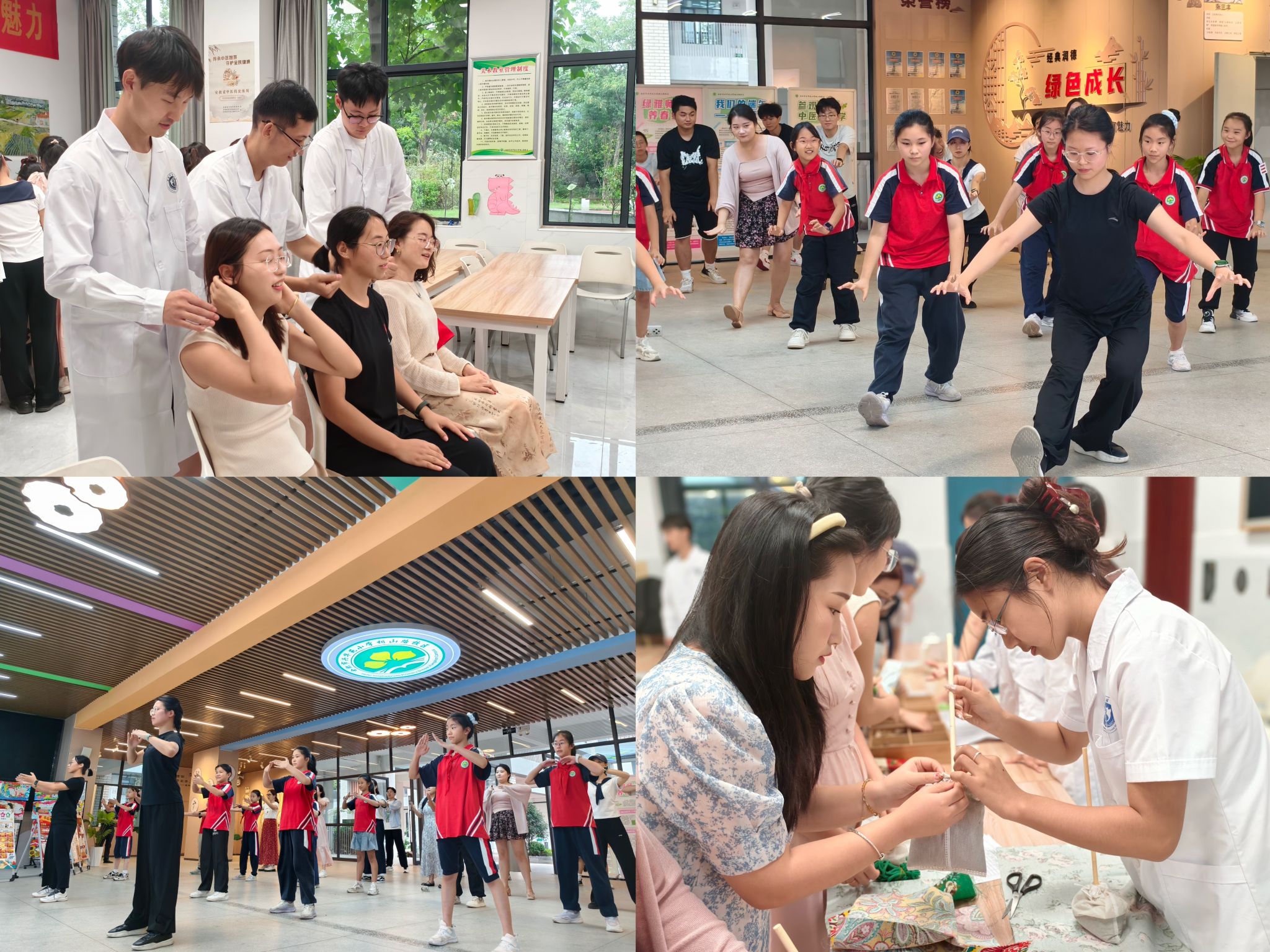 活动以“杏林传岐黄薪火,童心谢桃李师恩”为主题,将中医药文化融入节日氛围,活动内容丰富多彩秋季养生小讲堂以通俗语言讲解防燥护肺知识,五禽戏功法教学推广让师生感受传统功法魅力,中药香囊制作体验让师生亲手感受药材芬芳,中药茶饮品鉴则让味觉与传统文化深度对话。现场互动频繁,笑语不断,中医药文化的种子悄然播撒进一颗颗童心。