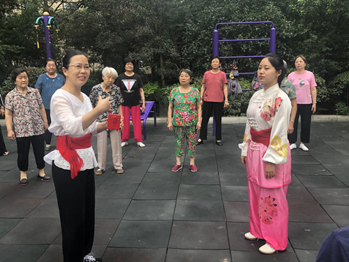 传承教学基地团队成员在教学前后,与社区居民谈心交流,向他们普及了古本易筋经十二势导引法养生理念知识,并约定今后每周定期进社区,常态化开展本导引法教学与习练活动。