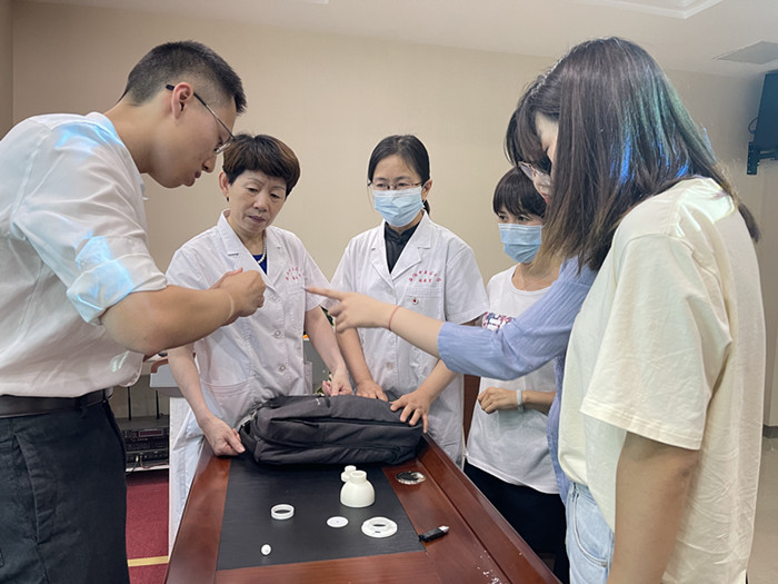 “五功罐”是由吕丽泽慧子等同学结合所学创制的一款针灸器具,其将临床常用的艾灸、温针灸、电针、拔罐四种治法有机融合,通过拆装部件改变装置气密性,可在“非气密模式”和“气密模式”间自由切换,具有安全便捷、一物多用、多法相融等诸多优点。项目在“互联网+”老员工创新创业大赛的校级初赛时,得到了公司领导、专家的充分认可,荣获冠军。