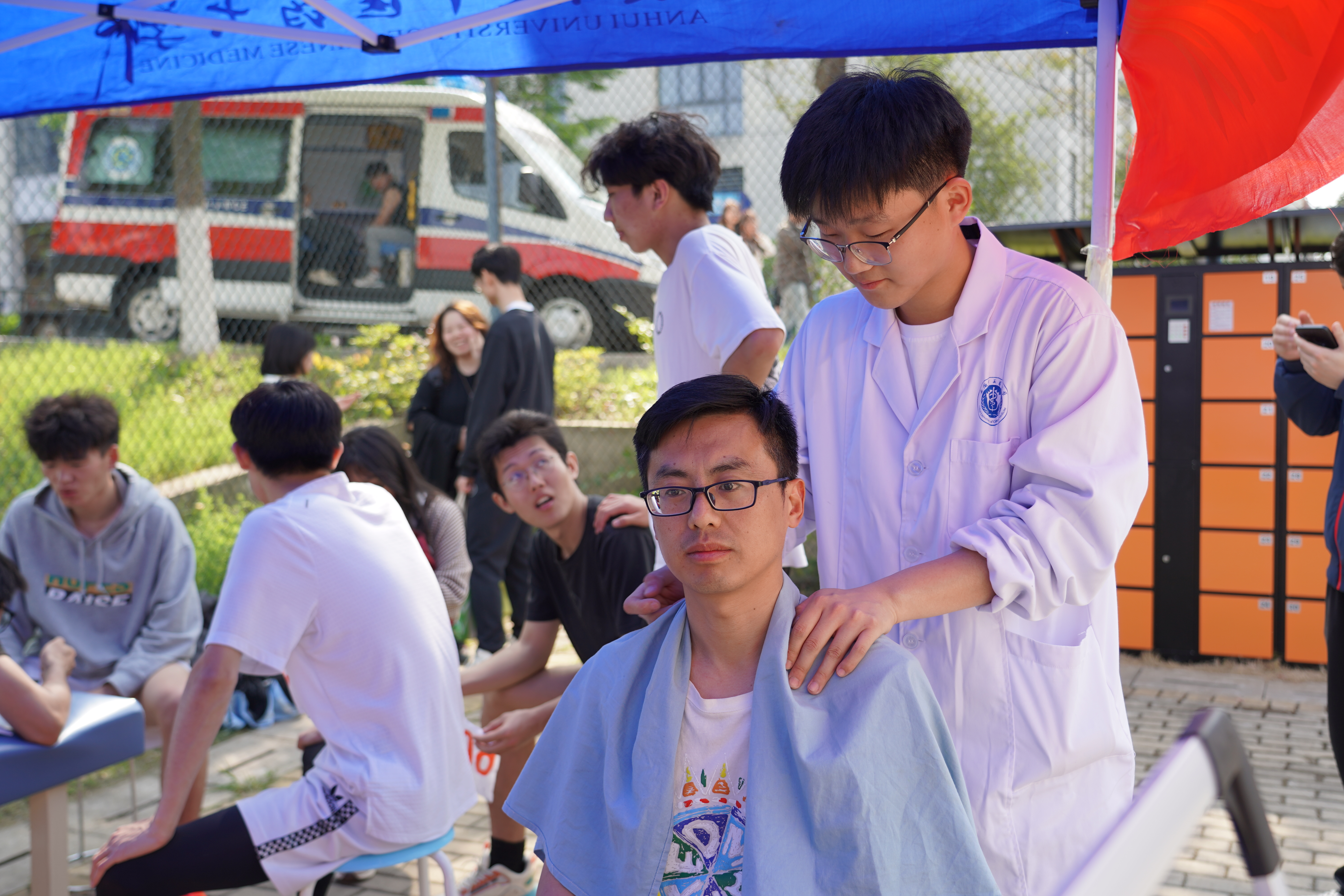 在运动会期间,服务队通过针灸、推拿、拔罐等方法促进运动员血液循环及新陈代谢,从而缓解运动员剧烈运动过后肌肉的紧绷感和酸胀感,以保证运动员用更好的状态参加比赛。现场许多同学积极参与体验,身心得到了极大的放松;服务队同学积极热情服务每一位前来体验的同学,为运动会的开展贡献自己的力量。