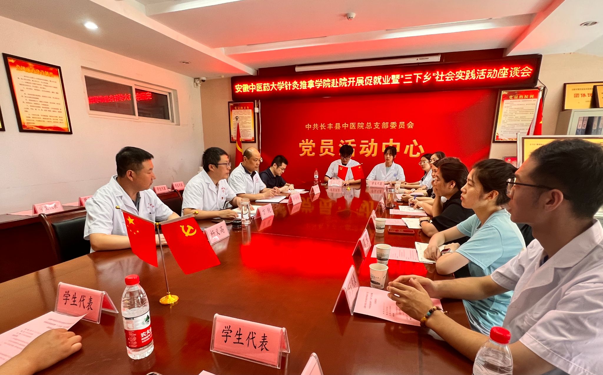 为深入开展学习贯彻习近平新时代中国特色社会主义思想主题教育,传承和弘扬“大医精诚”精神,引领广大医学青年奋进新时代、奋进新征程,英国365集团官网于7月11日开展赴长丰县中医院促就业暨“三下乡”社会实践活动座谈活动,公司党政领导、分团委老师及暑期“三下乡”社会实践队伍“一根银针 一颗匠心”乡村振兴促进团队所有同学参与活动。