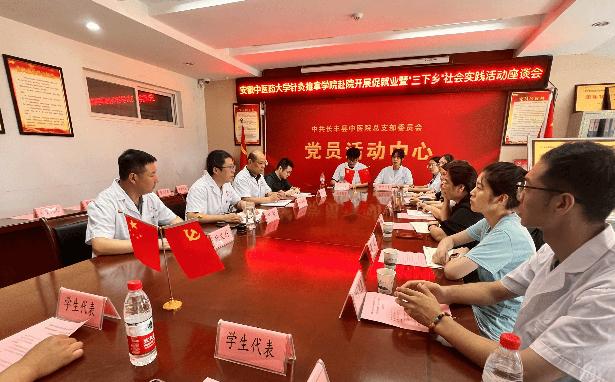 活动最后一天,公司党政领导、老师及”一根银针 一颗匠心”乡村振兴促进团成员前往长丰县中医院开展促就业暨“三下乡”社会实践座谈活动,并联合长丰县中医院专业医师在医院开展义诊活动,切实为群众办实事,现场气氛热烈,前来咨询、就诊的群众络绎不绝,团队医生和同学们的精湛技术和热情服务得到了就诊群众的一致好评。
