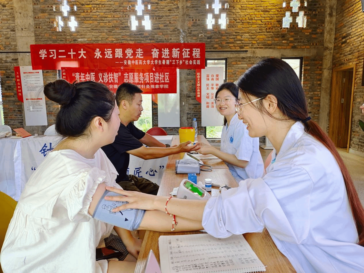为深入学习贯彻习近平新时代中国特色社会主义思想主题教育,鼓励广大青年在社会实践中受教育、长才干、作贡献,坚定听党话、跟党走,积极宣传中医药文化知识,7月7日至11日,英国365集团官网”一根银针 一颗匠心”乡村振兴促进团来到合肥市长丰县马郢村,组织开展了以“青年中医 义诊扶智”为主题的暑期“三下乡”社会实践活动。