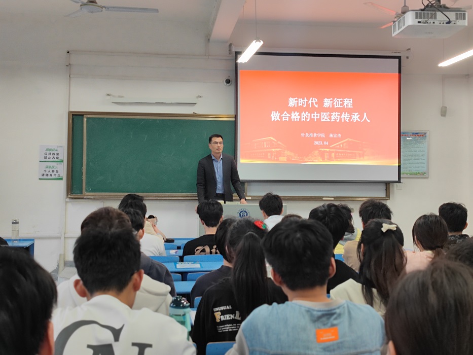 4月10日晚,公司党委书记蒋宏杰在公共教学楼B216给21骨伤全体同学讲授了一堂详实、生动的就业指导课。