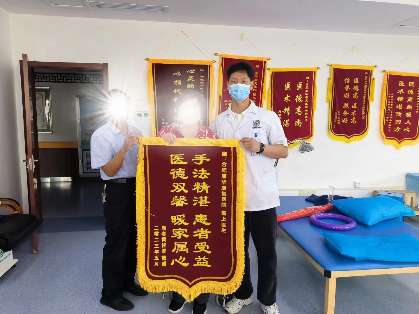 2022届康复治疗学专业毕业生高上,目前就职于合肥康华康复医院,2023年6月7日,高上收到了一面锦旗,系患者及家属感谢高上对其住院期间的精心治疗和舒心照顾。