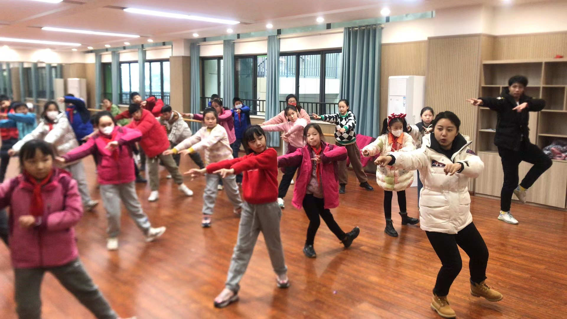 在二楼练功房,教工第二党支部党员李斯亮带着公司特选派的一批员工骨干和教师习练五禽戏,望湖小学健身气功“五禽戏”作为特色传统体育项目引进校园,通过习练“五禽戏”,让员工在强健体魄的同时,传承中华优秀传统文化,营造校园文体活动的良好氛围。在教授习练过程中,李斯亮一边给员工详细解说每一个动作要领,一边示范着标准动作,员工们个个兴趣盎然,认真地习练。