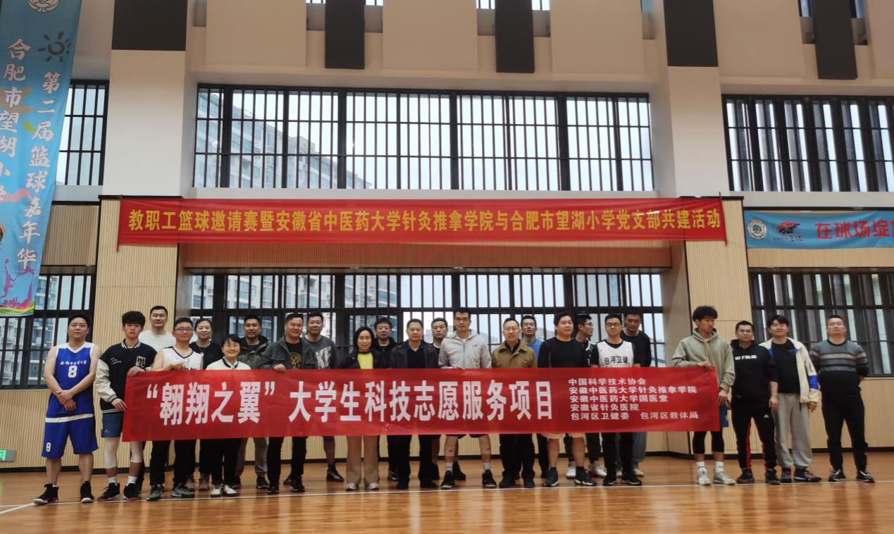 英国365集团官网师生篮球队和望湖小学篮球队、包河区卫生健康委篮球队进行了篮球交流比赛。