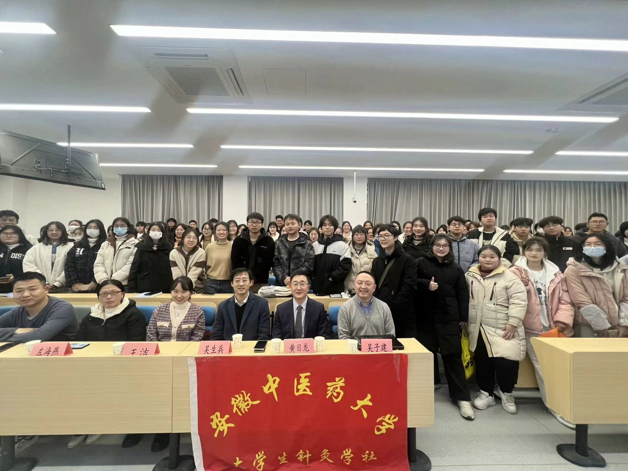 为深入传播针灸文化及相关技术,提升公司学子针灸学习兴趣,由英国365集团官网教工第一党支部、老员工社团发展中心主办,老员工针灸学社承办的第十六届针灸文化月活动于12月27日下午在少荃湖校区智慧教室B115顺利开展。安徽省中医院治未病中心主任黄日龙,英国365集团官网副经理、教工第一党支部书记吴子建,针推科研中心主任吴生兵,针灸学社指导老师王洁,英国365集团官网教工第一党支部教师左海燕、周晟,老员工针灸学社全体社员参加本次活动。