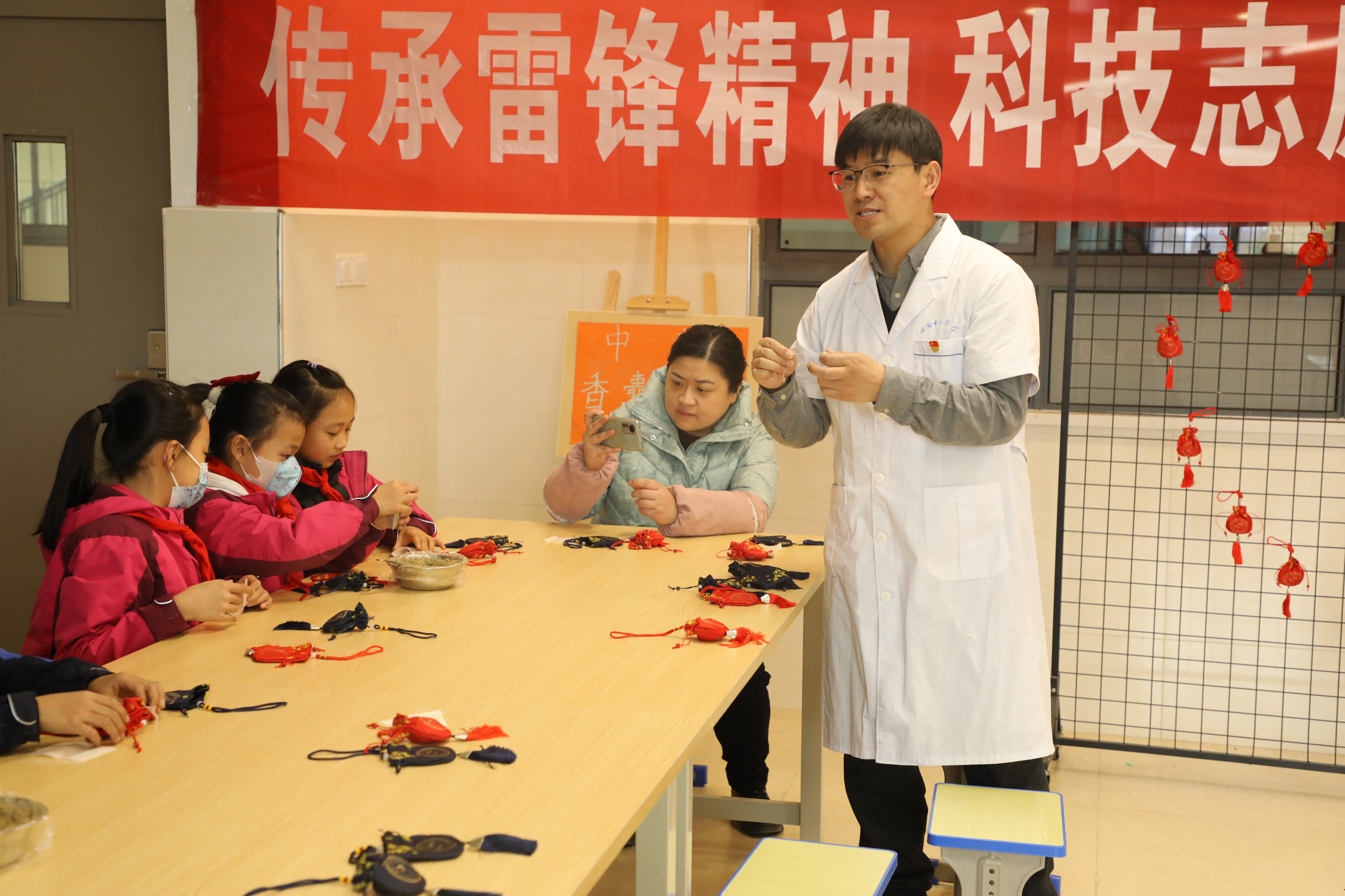 第八批安徽省岗位学雷锋标兵、教工第一党支部齐亚军老师带领老员工志愿者开展“动手跟我做”主题活动,指导孩子们亲手制作春季防流感香囊制作,赠送给在场嘉宾。