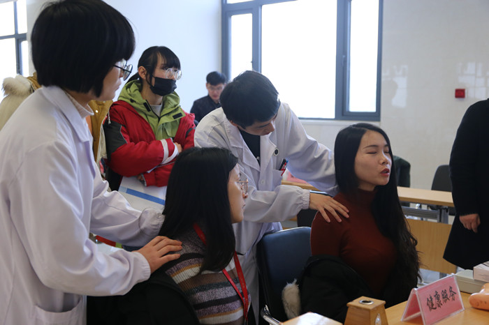 师生志愿者为快递从业青年开展了艾灸、推拿、耳穴等中医适宜技术义诊和颈椎腰椎病防治养生知识科普,受到快递青年的热烈欢迎,让快递青年实实在在感受到社会的温暖。