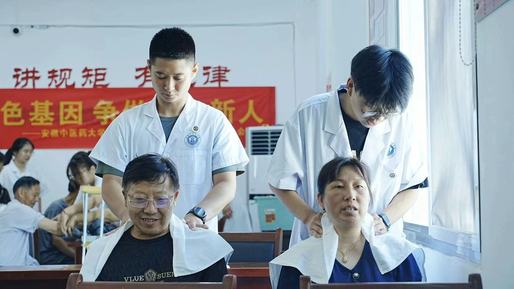 “院院”合力,义诊服务暖人心。实践期间,“一根银针,一颗匠心”爱心志愿服务团与公司第二临床医公司的专业医生共同在岳西县菖蒲镇毛畈村开展健康义诊。志愿服务团师生为前来咨询的居民提供血糖、血压检测,体验中医特色推拿、拔罐服务。针对群众的健康问题,医生们逐一耐心解答,给予科学的治疗建议,并根据情况进行中医针灸治疗。居民们的“舒服多了”、“谢谢你们”就是对医生和团队成员最大的支持和鼓励。