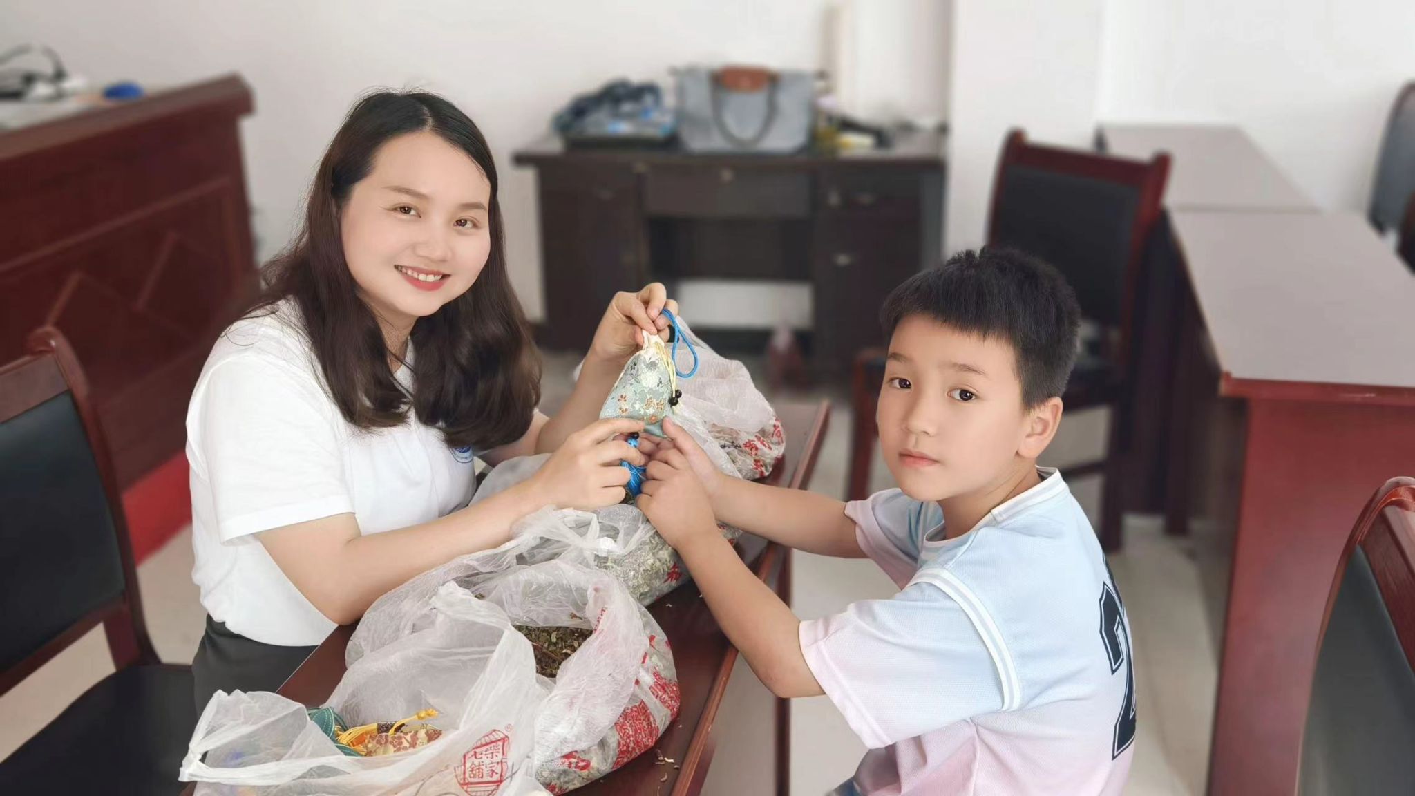 和谐校园,中医国粹润童心。团队走进毛畈村雷坳小学开展系列趣味活动:举办“预防近视”讲座,引导孩子保护视力,帮助他们养成健康的用眼习惯;开展“拒绝校园欺凌”法治教育,引导孩子树立正确的价值观和法治意识,共建和谐校园;制作非遗漆扇,培养动手能力,让孩子在斑斓的色彩碰撞中感受到中华传统文化的无限魅力;开展中药香囊和艾草锤制作活动,引导孩子在动手的过程中识别中药材并了解其功效,在幼小的心灵中埋下热爱中医药的种子。