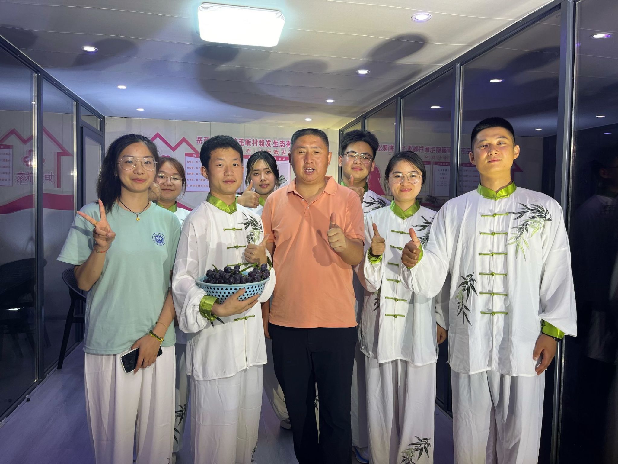 青春直播,致富乡村振兴路。为助力毛畈村乡村振兴发展,团队成员主动请缨参与助农直播,为当地葡萄销售注入了青春活力。在直播期间,团队成员结合公司特色,通过表演五禽戏、八段锦、易筋经、太极拳等传统功法提高直播带货人气,不仅让直播间的观看次数刷新了记录,果品销售量创本月新高,还提高了公司的知名度,让更多的人对传统中医文化产生兴趣。