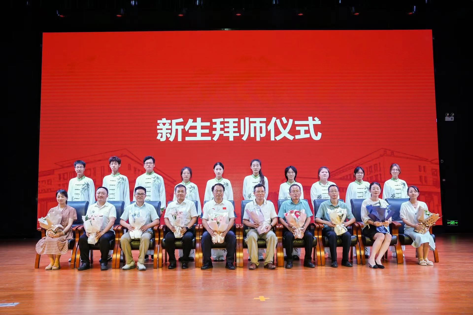 恰逢第40个教师节,校外导师代表袁守龙、9位校内教师罗绍明、雷黎、刘自兵、吴子建、姚长风、张雷、彭传玉、李梦醒、张梅,共10位教师代表上台接受新生代表的拜师礼。针苑教师将紧紧围绕立德树人根本任务,传承尊师重教的精神,实施教育家精神铸魂强师行动,朝着建成教育强国战略目标扎实迈进。 员工一拜传道之恩,二拜授业之恩,三拜解惑之恩,师道相续,薪火相传。全体新生诵读《大医精诚》,将德技双修、医者仁心的中医学子的“医员工誓言”,融入血脉,融入初心,担负起传承创新发展中医药事业的使命。