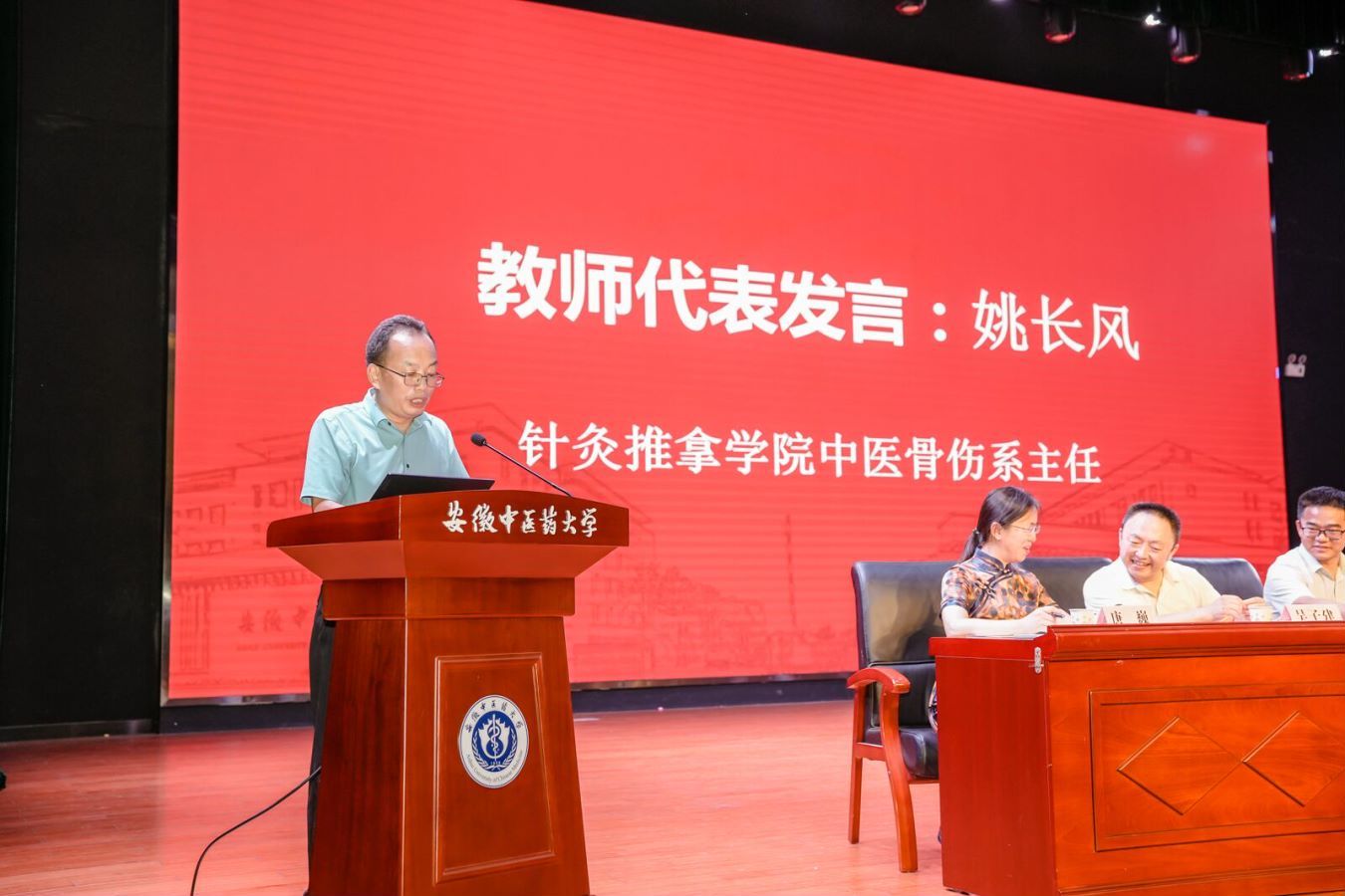 公司中医骨伤系主任姚长风作为教师代表发言,他希望员工们保持坚韧的学习姿态,同时要学会坚强,积极参加社会实践活动,常与身边的老师沟通,处理好人际关系。祝愿同学们在即将开始的老员工活中,不忘初心,奋发向上,收获知识,收获友谊,收获属于自己的精彩未来。