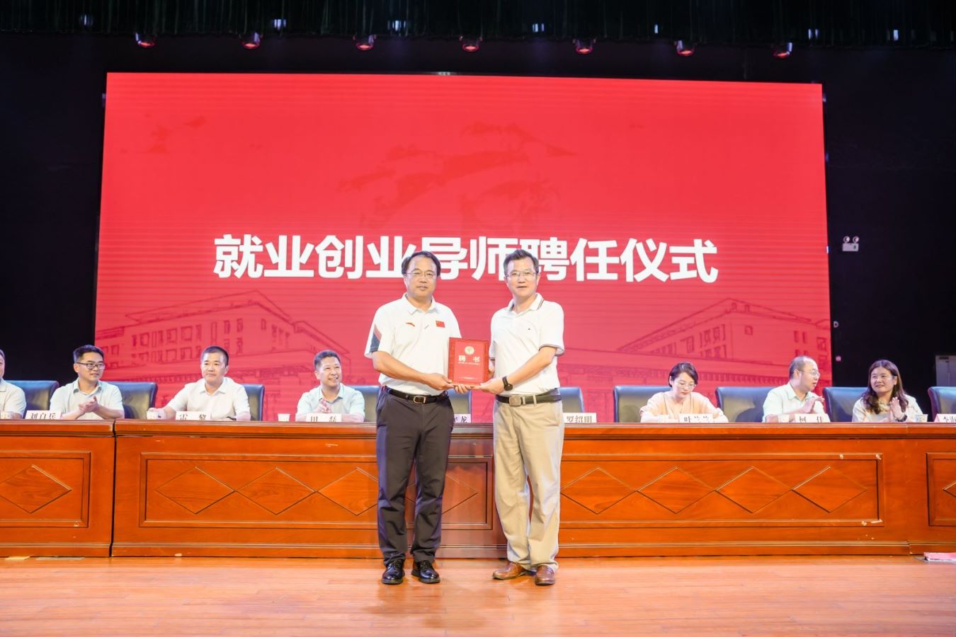 公司特聘袁守龙为公司就业创业导师,罗绍明为其颁发聘书,此举旨在进一步加强公司就业创业工作队伍建设,提升就业创业指导服务水平,不断开创公司就业创业工作新局面,实现员工更加充分更高质量的就业创业。