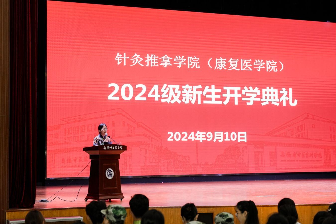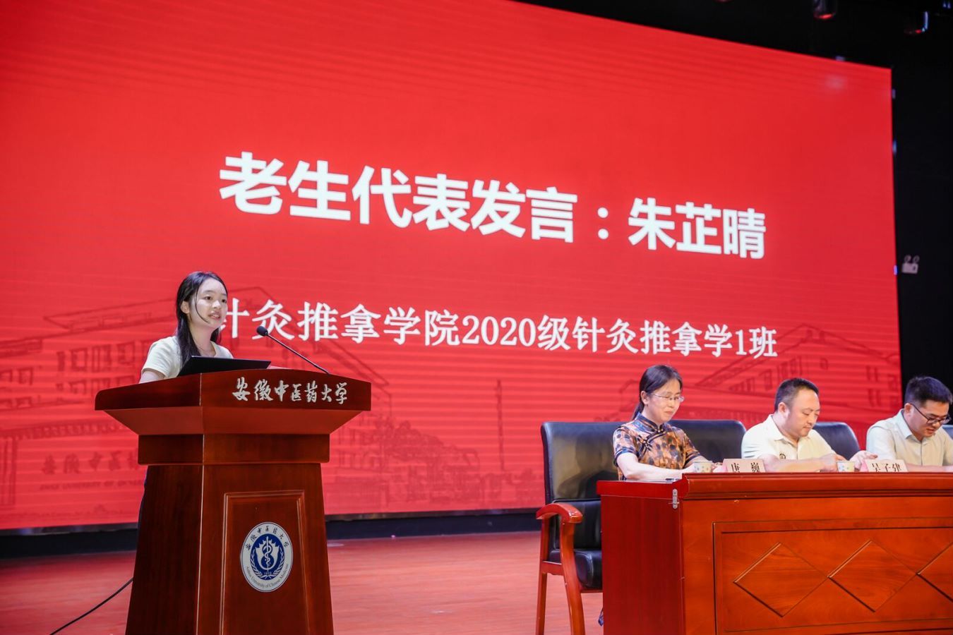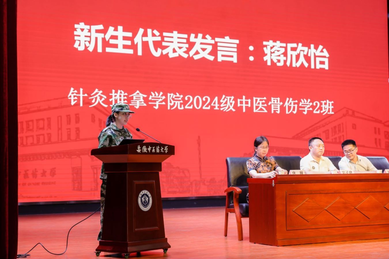 公司2020级针灸推拿学1班朱芷晴和2024级中医骨伤学2班蒋欣怡分别代表老生和新生发言,朝气蓬勃的他们,用充满激情的语调向全体新生传递了积极向上的精神风貌。