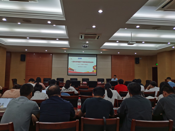 6月16日下午,公司举办“学党史 做示范 迎‘七一’庆百年”党组织书记讲党课活动,会议由该公司党委书记蒋宏杰主持,该院全体教职工、研究生参会。